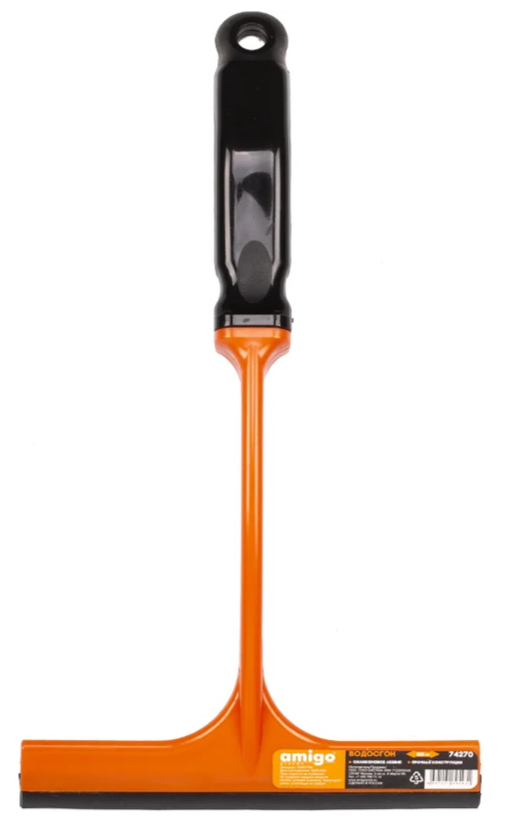 **Водосгон Amigo** оборудован силиконовым лезвием. Имеет прочный пластиковый корпус с удобной рукоятью. Предназначен для удаления влаги с автомобильных и оконных стекол при мытье, с зеркальных и гладких поверхностей. Не оставляет после применения полос и других следов, практически полностью устраняет влагу.
