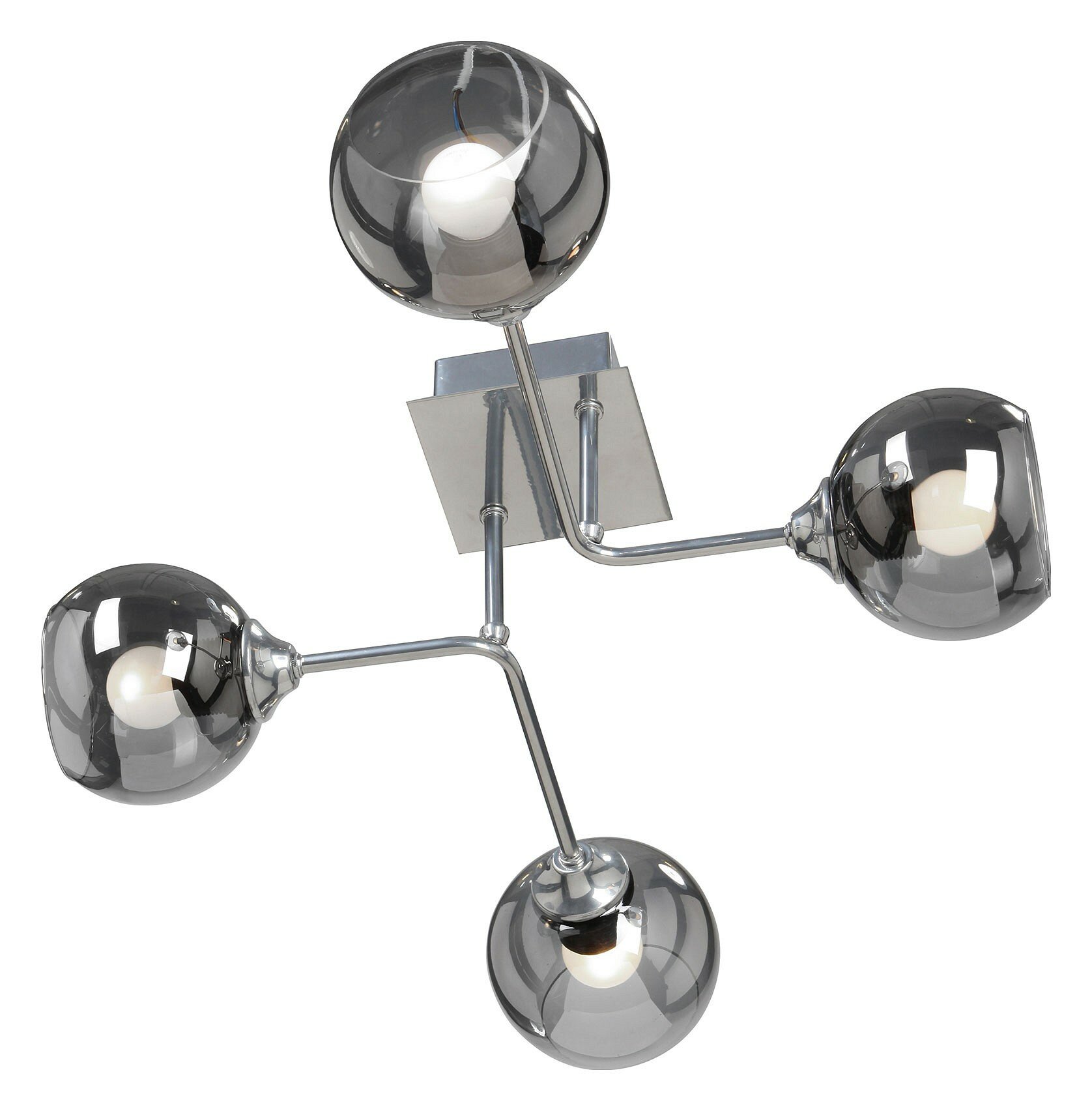 **Потолочная люстра «Кристина»** — элегантная модель в стиле «Шарм» для освещения жилых и коммерческих помещений площадью до 8 м². Конструкция состоит из металлического подвеса и 4 ламп в стеклянных плафонах. Основной цвет изделия — серый.