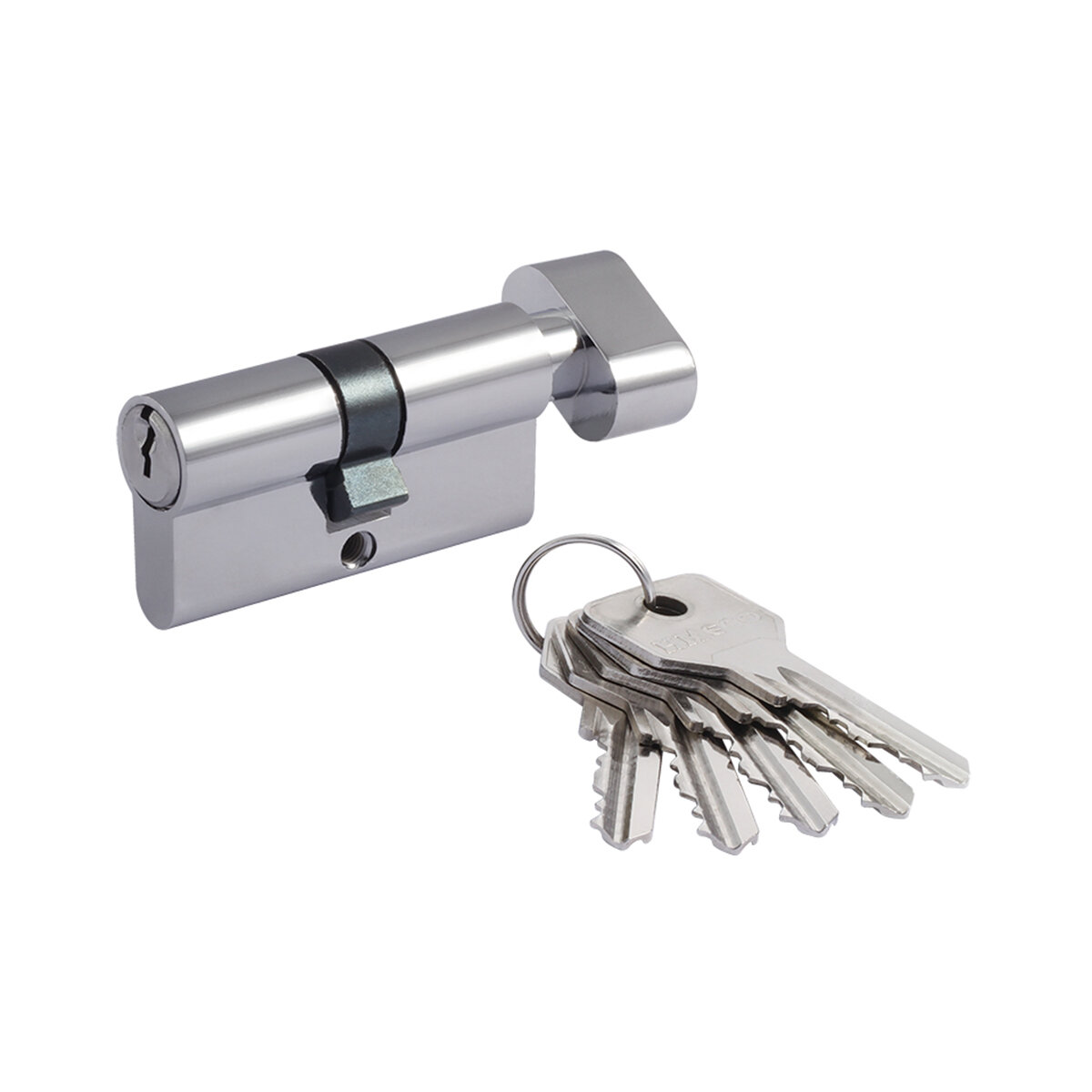 Цилиндр для межкомнатных и входных дверей. Материал ЦАМ (сплав цинка, алюминия и меди). В комплекте 5 стальных английских ключей. 5 пинов. Длину цилиндра подбирайте исходя из толщины двери, с небольшим запасом под накладку