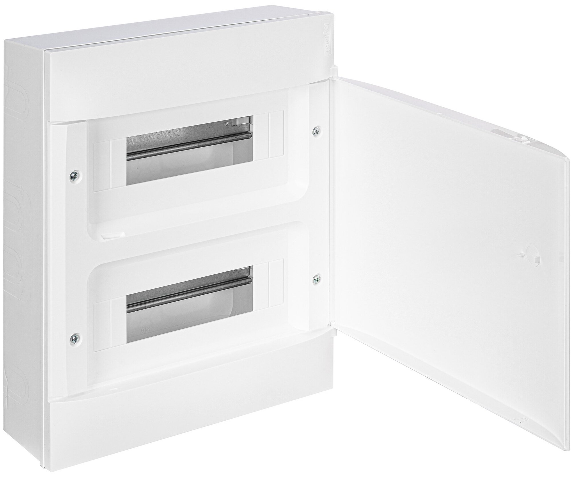 **Щит распределительный навесной Legrand Practibox S** предназначен для установки на сухих перегородках и кирпичных стенах. Выдерживает температуру до 750°С. Оснащен плоской металлической дверью и рамой, окрашенными эпоксидной эмалью. Внутри присутствует разметка для установки клемм, в комплекте идут аксессуары для монтажа.