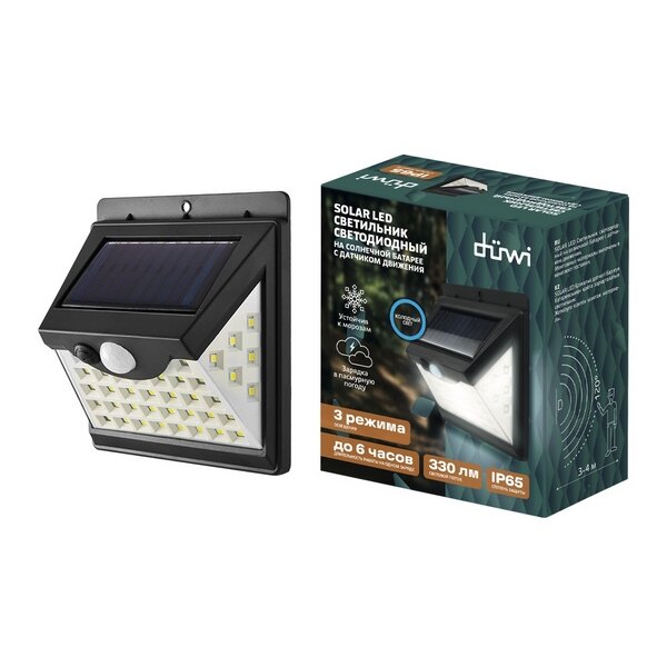 Светильник светодиодный уличный Duwi Solar LED на солнечных батареях 8Вт 6500К 330Лм IP65 датчик движения черный Solar LED 25014 2