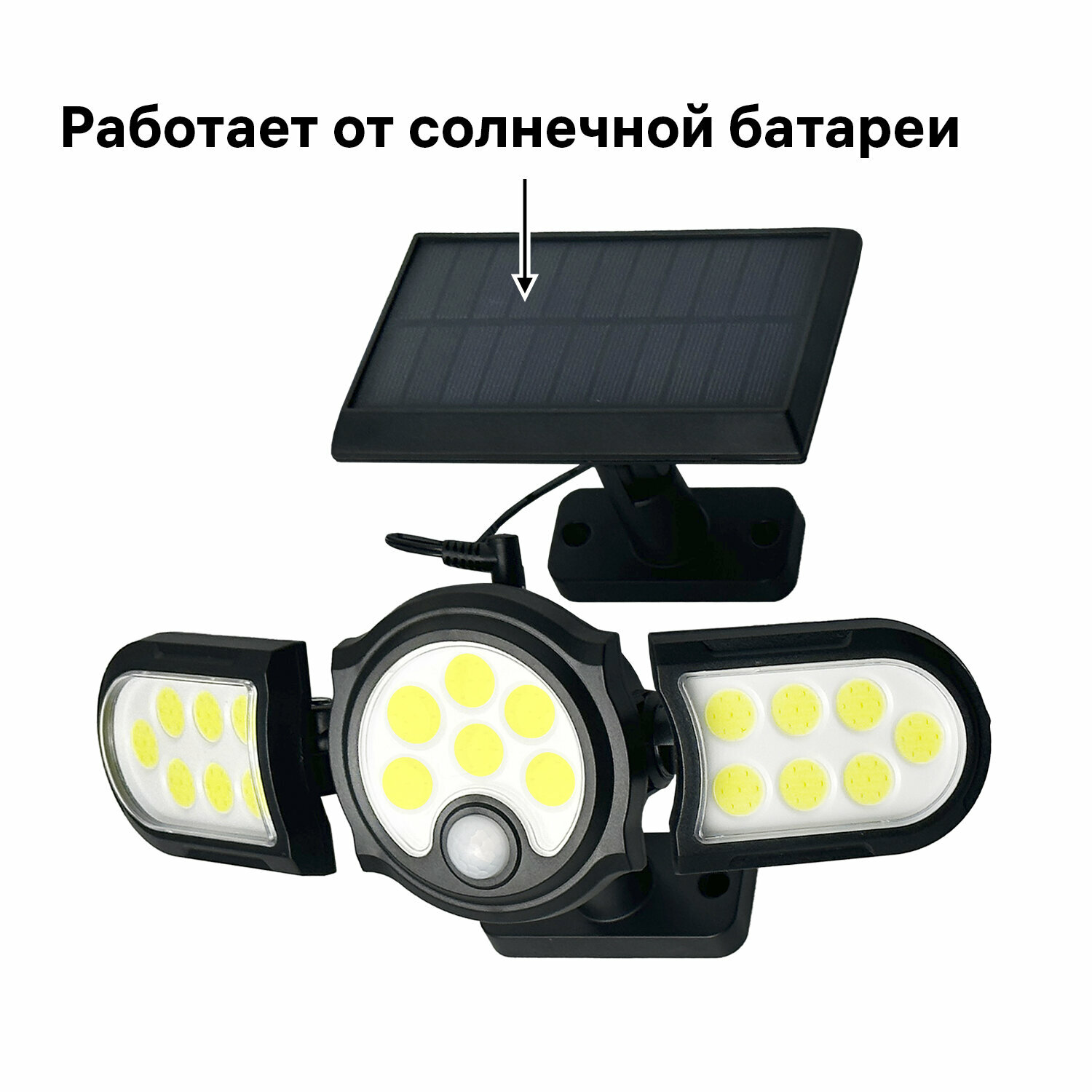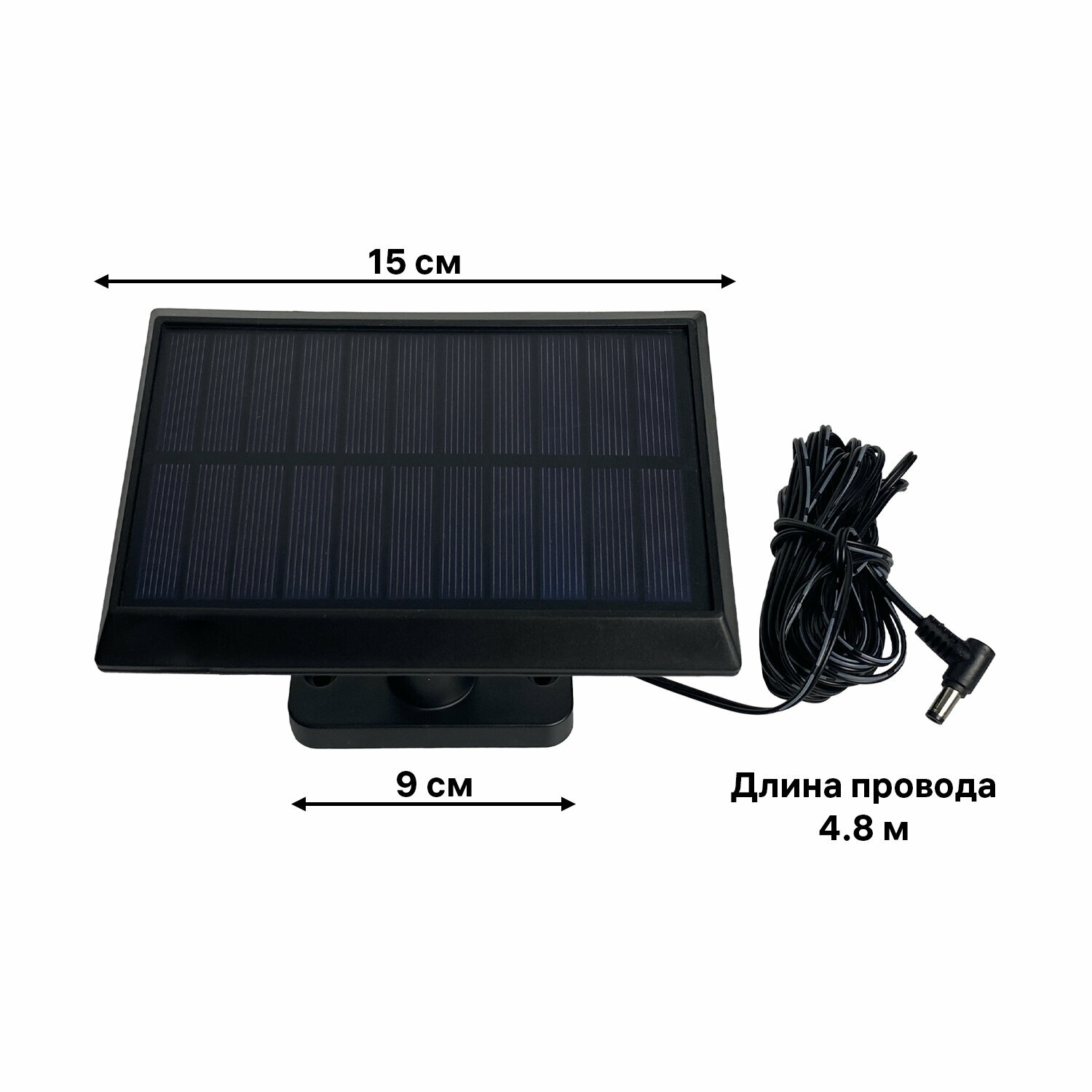 - Выносная солнечная панель с проводом 4,8 метра.