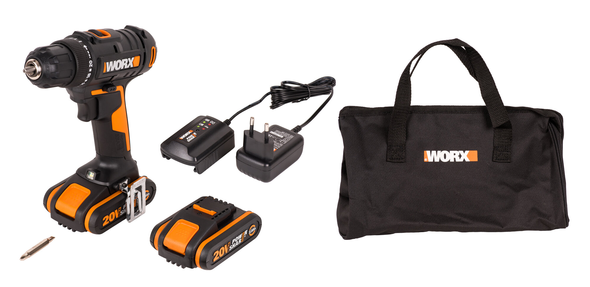 Компактный и лёгкий аккумуляторный шуруповёрт **Worx ** – это универсальное решение для домашнего использования и выездных работ. Небольшой по размерам корпус устройства совместил в себе функции шуруповерта и дрели, а аккумуляторная конструкция обеспечила удобство работы без проводов. Шуруповёрт работает от универсального аккумулятора WORX Powershare, который оснащен электронной платой защиты от глубокого разряда и перегрева. Данная технология позволяет поддерживать оптимальную емкость батареи, гарантируя длительный срок ее службы. Устройство оснащено двумя режимами скорости – для сверления и для работы с крепежом. Максимальный крутящий момент 30Нм позволяет решать любые задачи, а 20 ступеней регулировки момента затяжки обеспечивают работу с любым крепежом. Для удобства работы в условиях ограниченной видимости предусмотрена подсветка рабочей зоны. Быстрозажимной патрон с максимальным диаметром оснастки 10мм оснащен блокировкой шпинделя и фиксацией оснастки одной рукой. Для смены режима работы потребуется минимум времени и усилий. Аккумуляторная конструкция позволяет использовать инструмент вдали от центрального электроснабжения. Щеточный двигатель обладает низким уровнем потребления энергии, обеспечивая длительность автономной работы. # Особенности: - Тип двигателя: Щеточный. - Напряжение аккумулятора: 20 В. - Емкость аккумулятора: 2 А*ч. - Тип аккумулятора: Li-lon. - Количество аккумуляторов в комплекте: 1. - Max крутящий момент: 30 Нм. - Число ступеней крутящего момента: 20+1 - Число скоростей: 2. - Наличие удара: нет. - Наличие подсветки: есть.