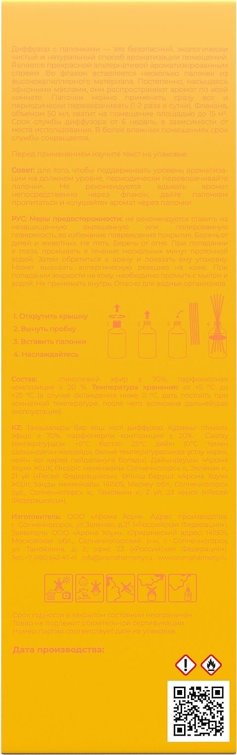 | Модель продукта | Диффузор Ароматический "MANGO" 50 мл |