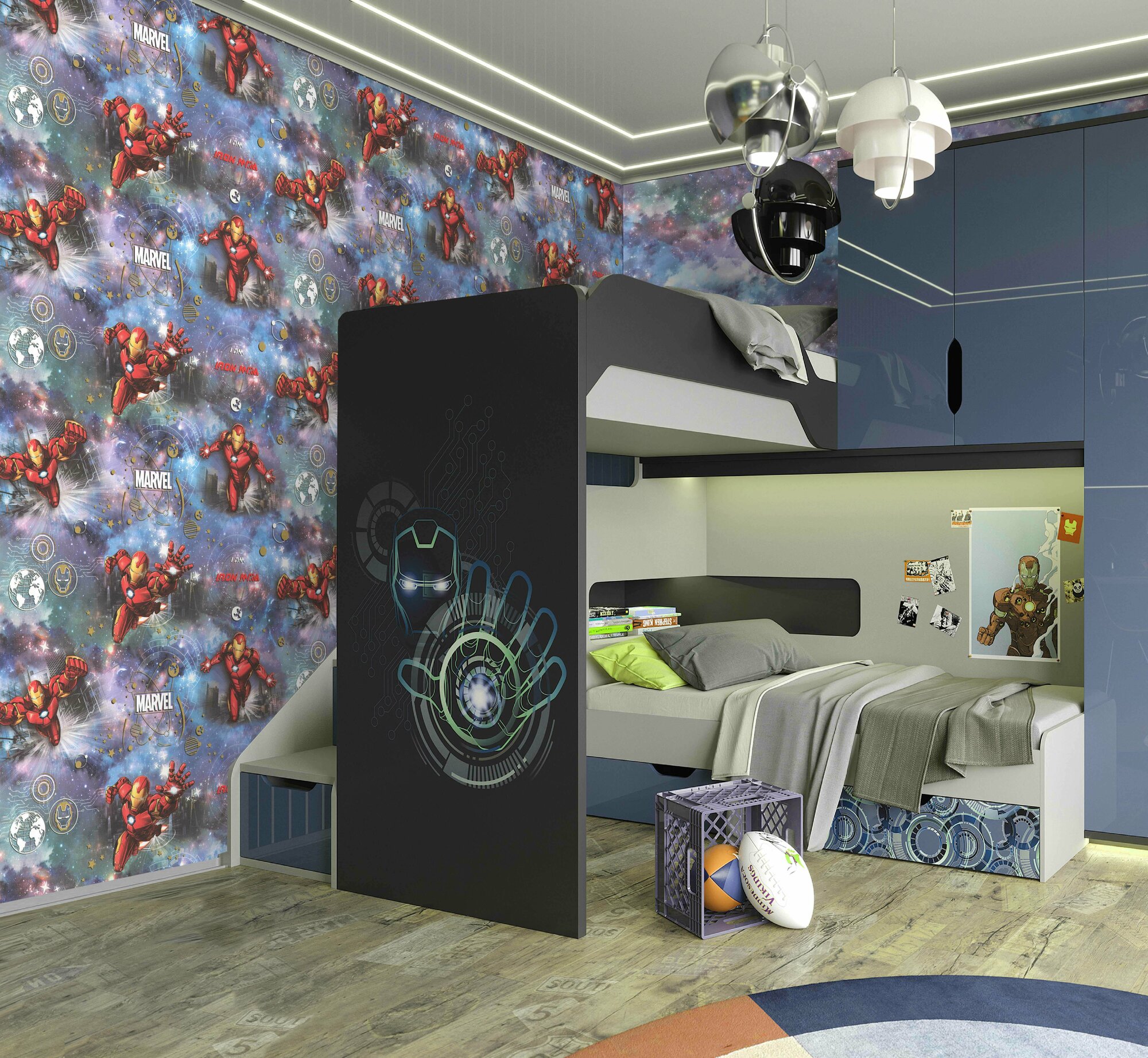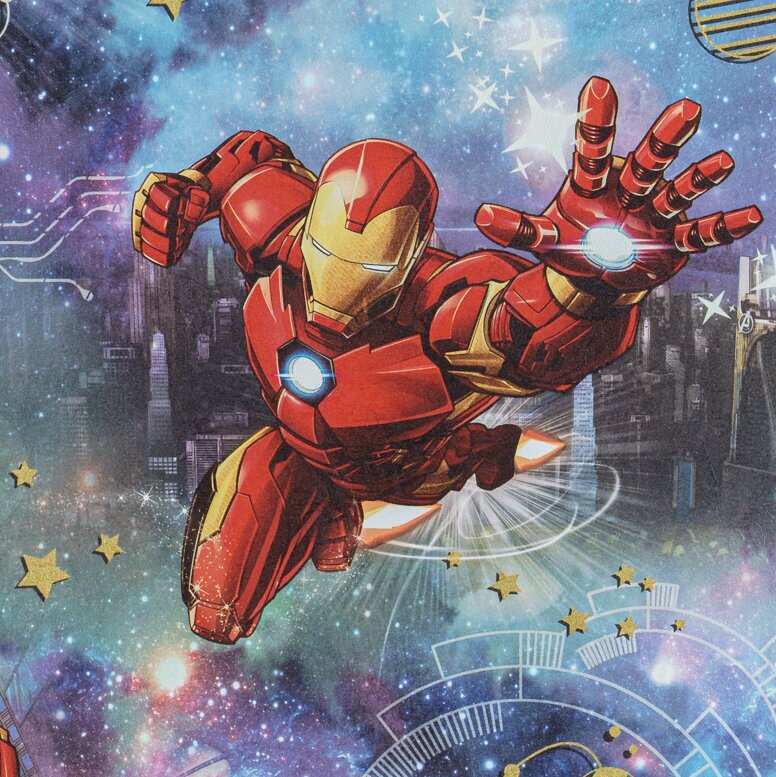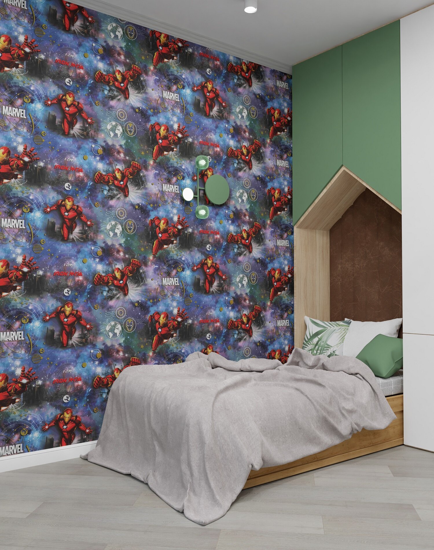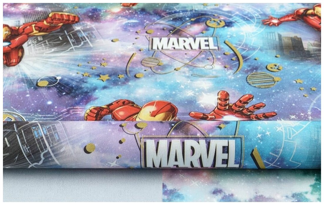**Обои флизелиновые Ovk design Железный человек синие 1.06 м 10650-01** предназначены для оклейки стен детской и игровой комнат. Подходят для оформления выделенных зон в помещениях. Характеризуются матовым покрытием, устойчивым к внешним воздействиям. На него нанесен рисунок с изображением героя из Вселенной Marvel. Допускается очищение с помощью влажной тряпки.