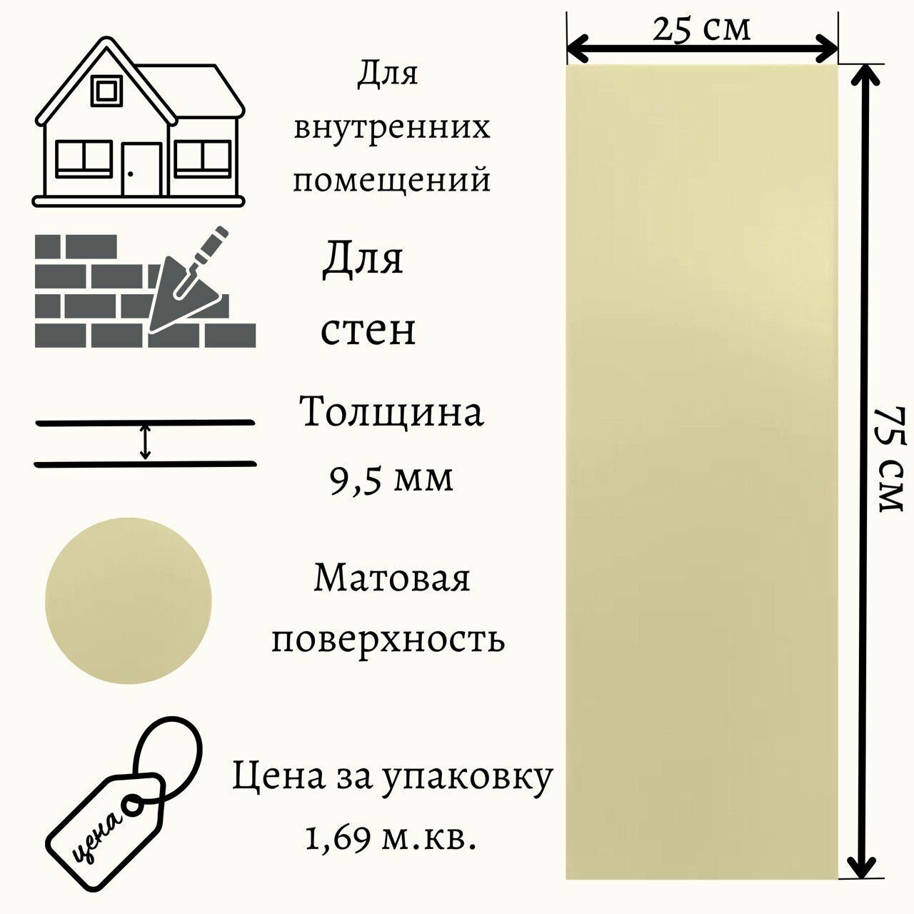 Плитка настенная Керамин Сонет 3 75х25 см 1.69 м² цвет бежевый СОНЕТ Сонет