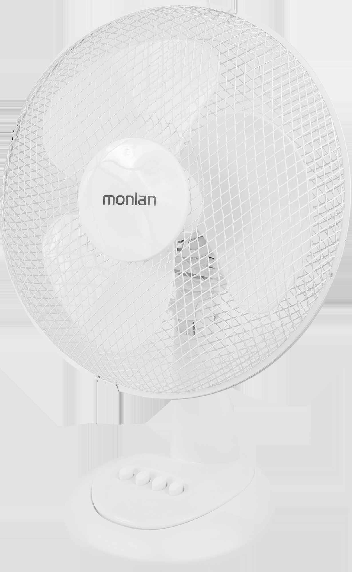 **Вентилятор настольный Monlan ** — простое и надежное устройство, обеспечивающее перемещение воздуха в помещение. Способствует комфортному пребыванию в знойные дни. Предусмотрено три скорости, что позволяет контролировать интенсивность вращения лопастей и, соответственно, передвижение воздушных потоков. Лопасти изготовлены из износостойкого и прочного пластика. Питание осуществляется от стандартной электросети — для подключения к ней есть кабель длиной 1,5 м.