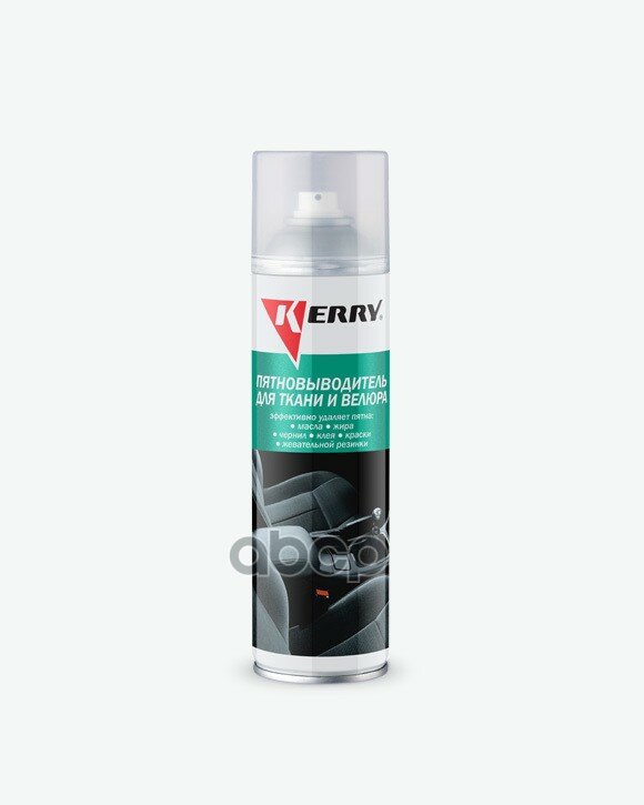 **Пятновыводитель для ткани и велюра Kerry KR-978** — эффективное средство с уникальной формулой, которое очищает пятна разной сложности: от масла, жира, чернил, клея, краски и даже жевательной резинки. Отличается деликатным воздействием. Предназначен для обработки обивочных материалов автомобильного салона, предметов мягкой мебели и других поверхностей. Баллон с составом оснащен дозатором. Он позволяет точечно наносить пятновыводитель и обеспечивает экономичный расход. Перед использованием тщательно встряхнуть емкость. Способ применения простой: распылить состав на пятно, подождать 1-2 минуты и удалить загрязнений щеткой.