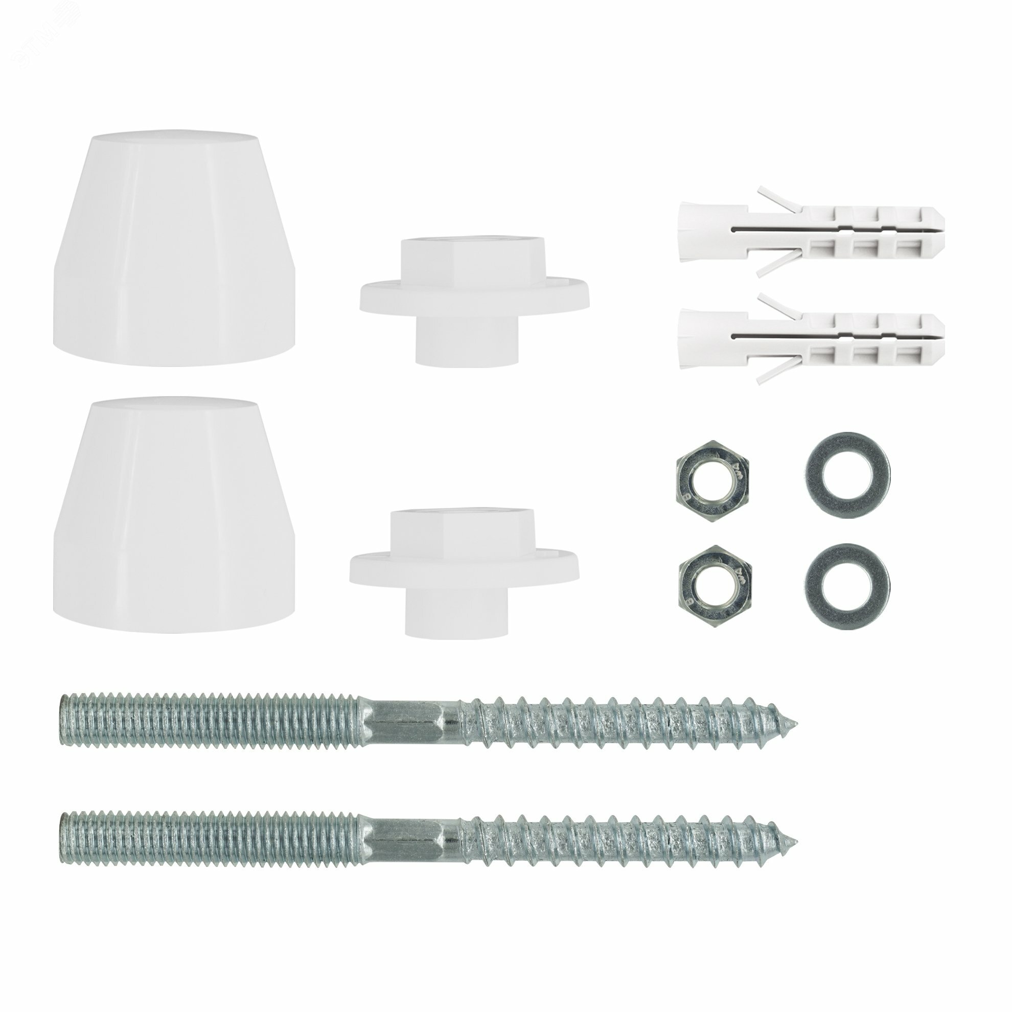 **Комплект крепления PWB 30** предназначен для надeжной фиксации раковин на стенах из бетона, камня и полнотелого кирпича. В комплекте набора: дюбель нейлоновый - 2 шт., шпилька сантехническая - 2 шт., шайба - 2 шт., гайка - 2 шт., гайка-втулка - 2 шт., заглушка - 2 шт.