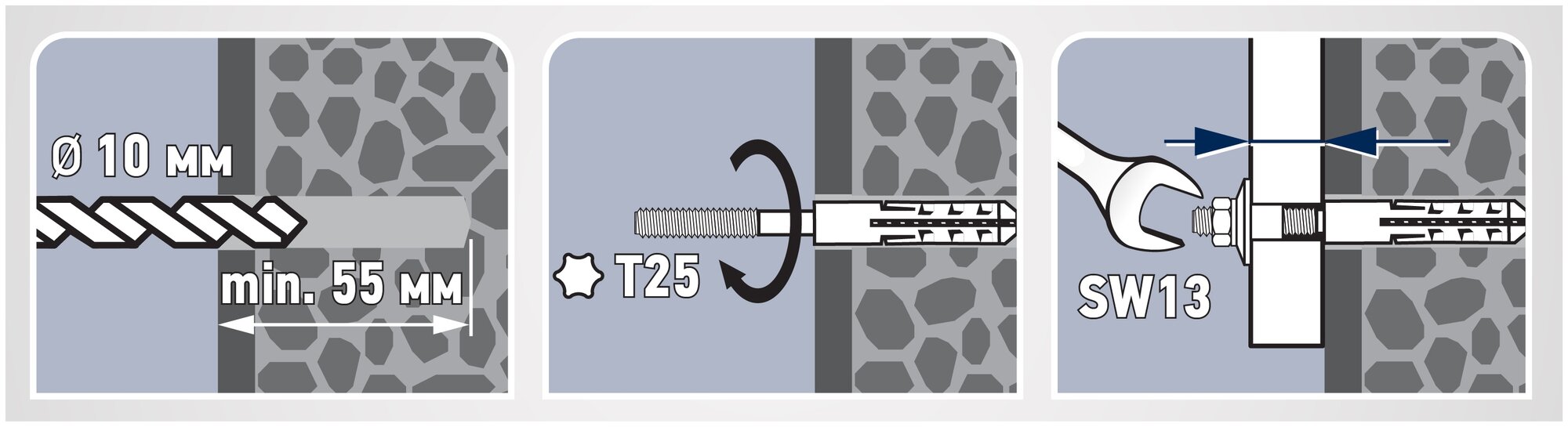 - Диаметр дюбеля 10 мм, длина 50 мм.