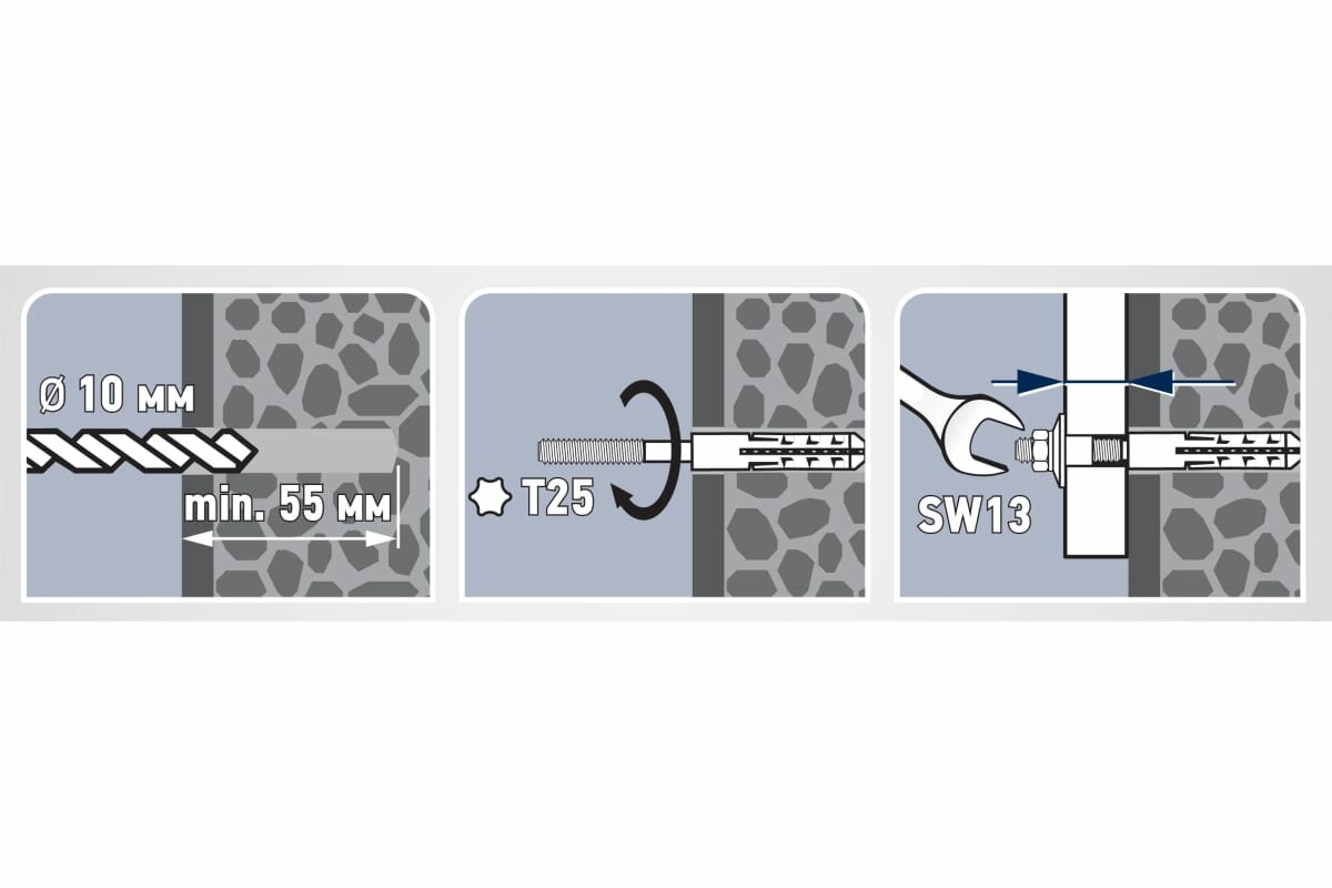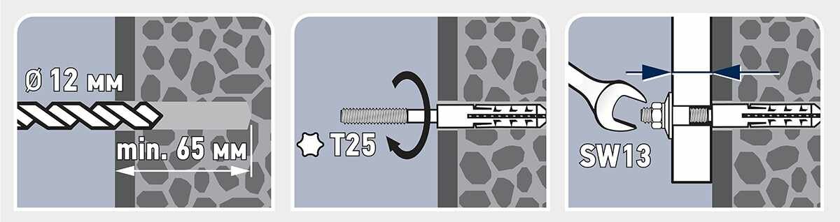 - Диаметр дюбеля 12 мм, длина 60 мм.