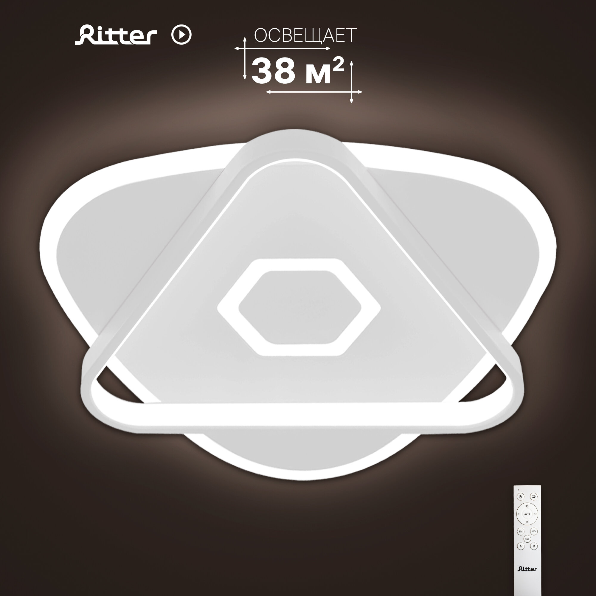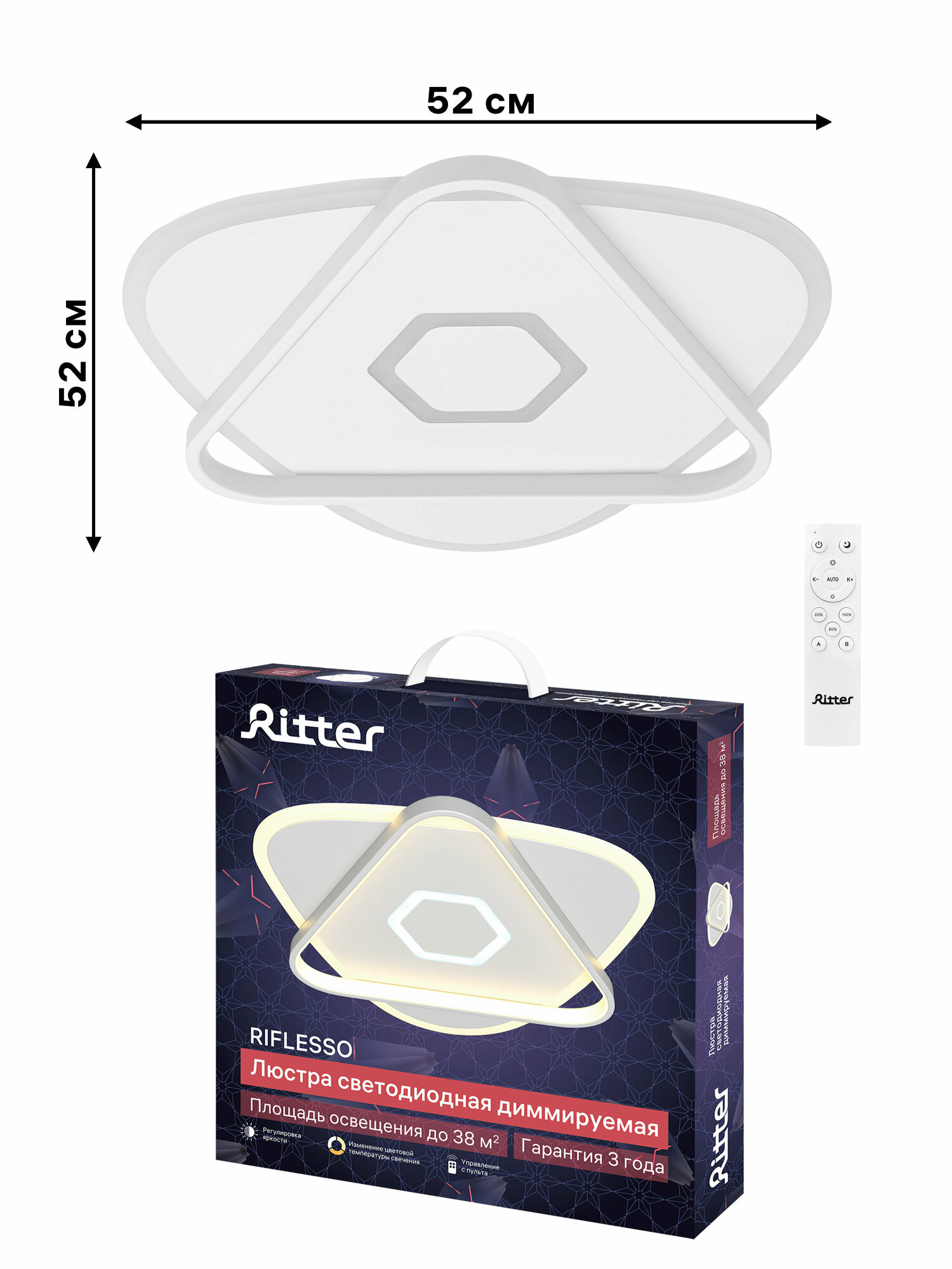 Люстра потолочная светодиодная диммируемая Ritter RIFLESSO с д/у 90 Вт 38 м² 2700К-6500К цвет белый 52305 9
