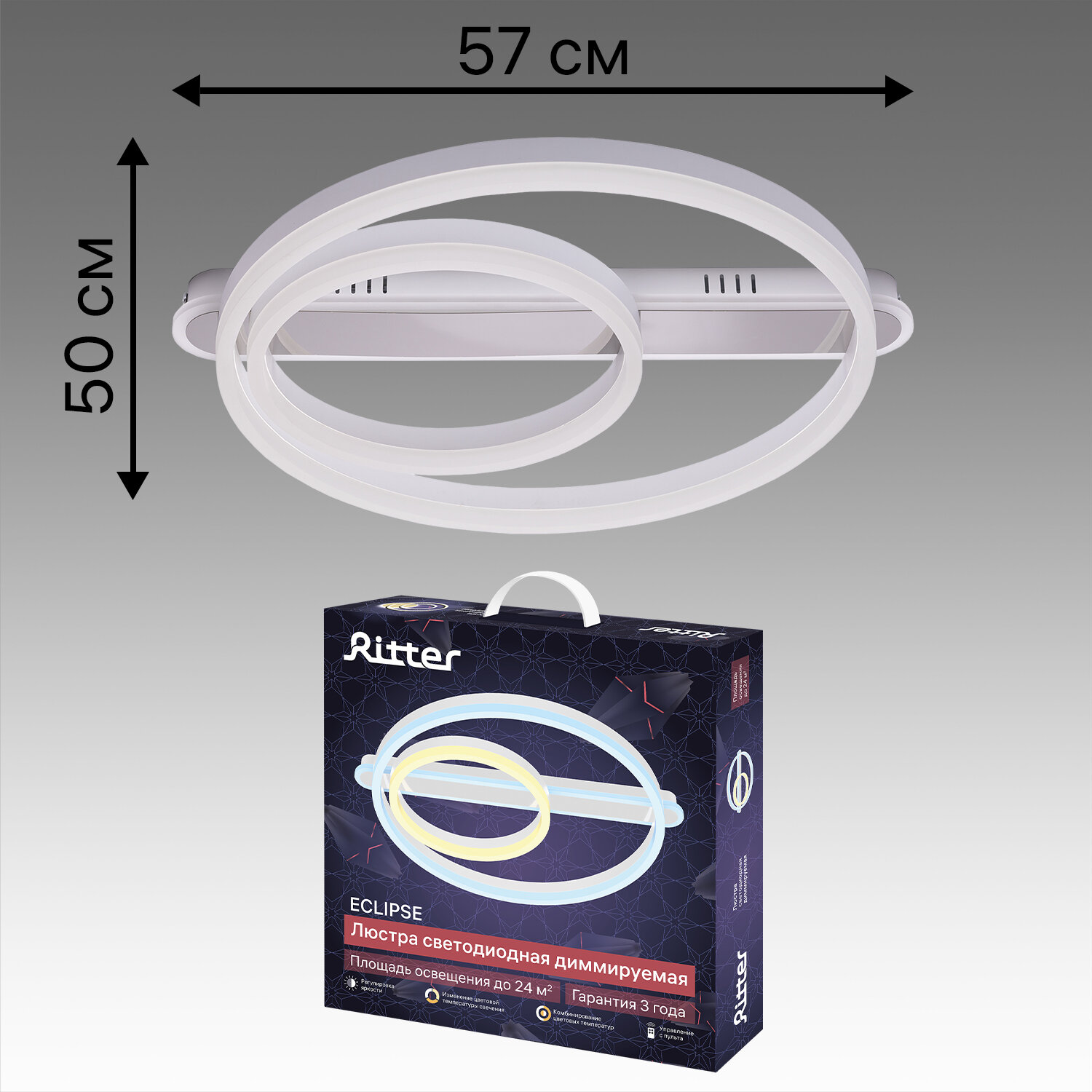 Люстра потолочная светодиодная диммируемая Ritter ECLIPSE с д/у 96 Вт 24 м² 2700К-6500К цвет белый/хром 52086 7