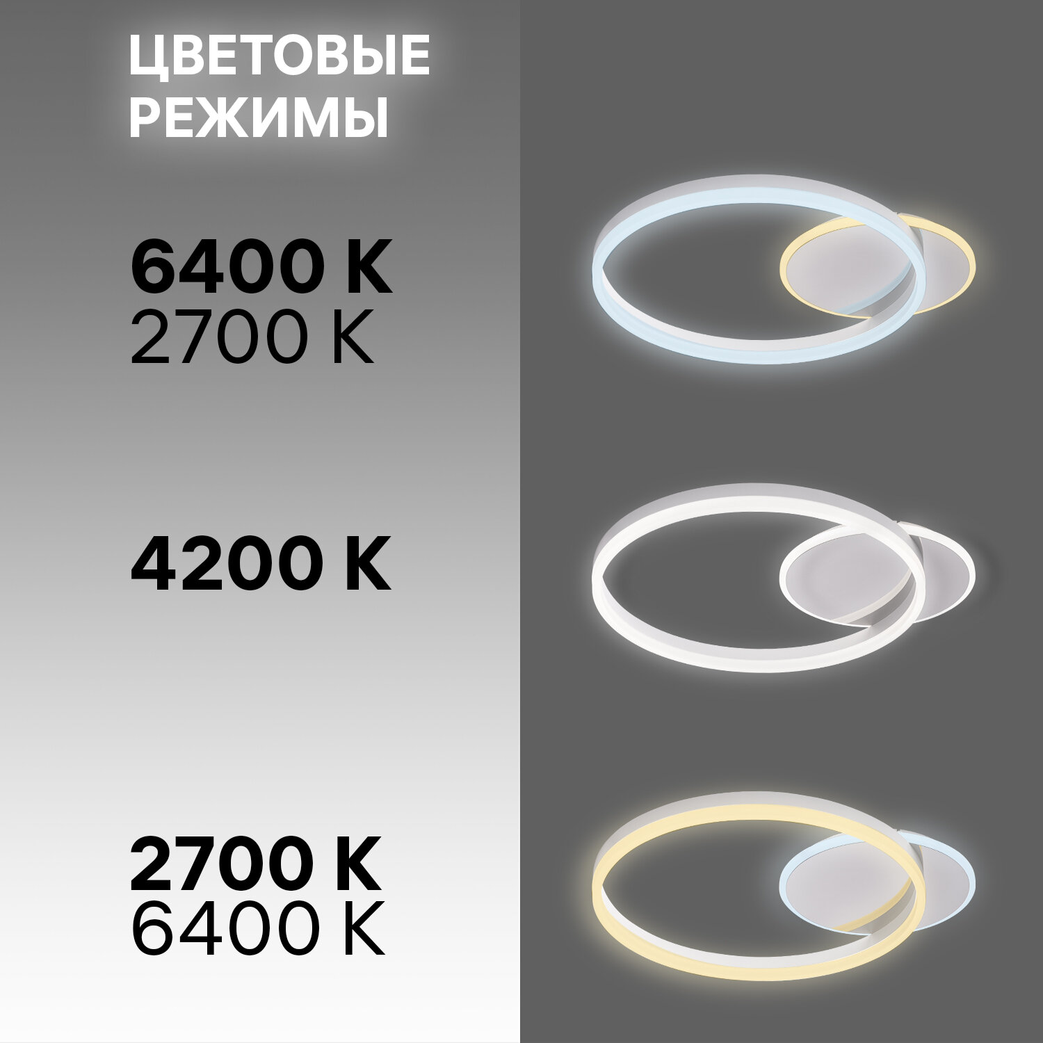 | Цвет освещения | Изменение оттенков белого |
