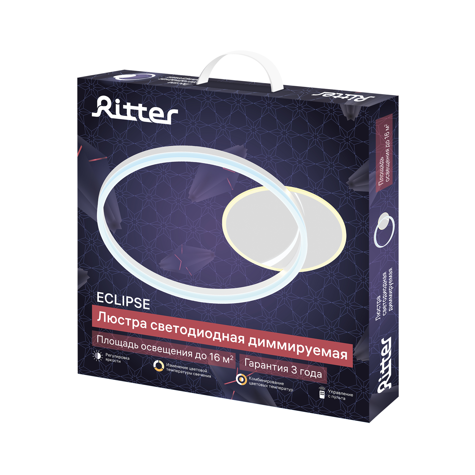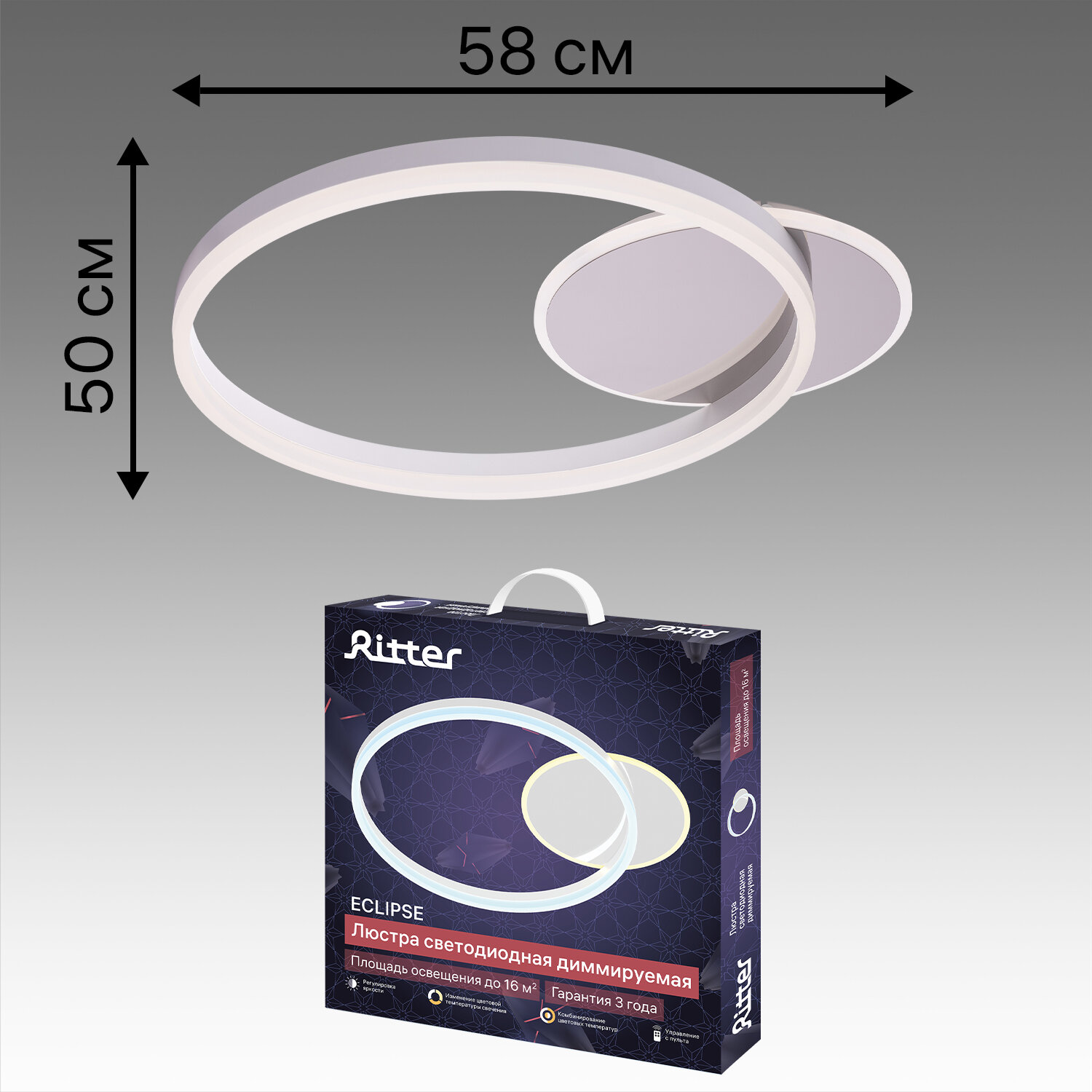 Люстра потолочная светодиодная диммируемая Ritter ECLIPSE с д/у 64 Вт 16 м² 2700К-6500К цвет белый/хром 52085 0