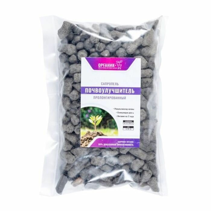 **Сапропель Органик почвоулучшитель** — натуральный компонент, содержащий в составе разнообразные полезные вещества, витамины. Применяется для улучшения качественных характеристик почвы. Может вноситься в грунт как в сухом виде, так и как раствор. Подходит для использования в качестве дренажа.