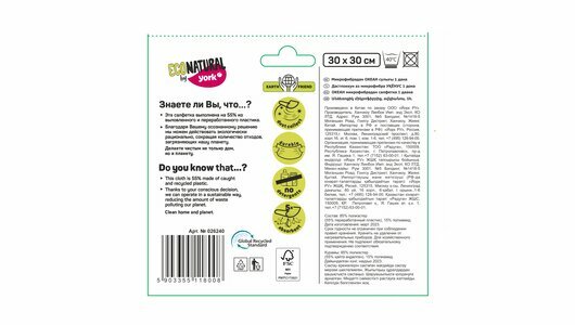 На сегодняшний день товар «Салфетка для уборки York Океан Эко Натурал микрофибра 026240 (размер: 30х30)» можно купить с кешбеком в 1 магазине: Яндекс.Маркет