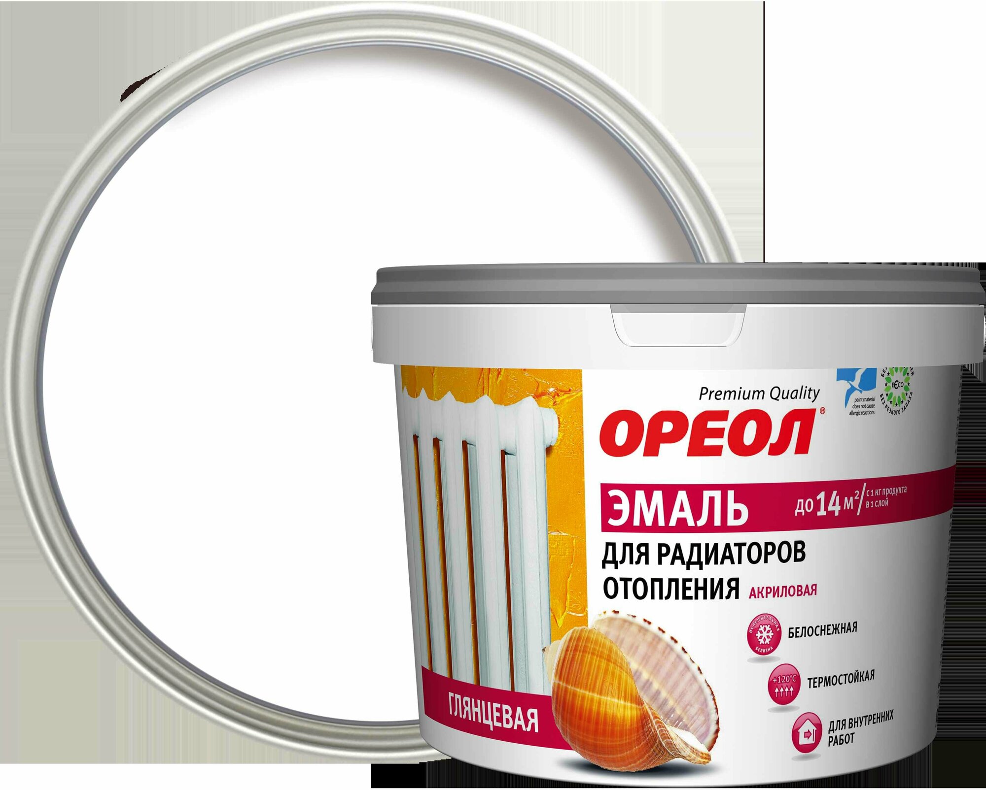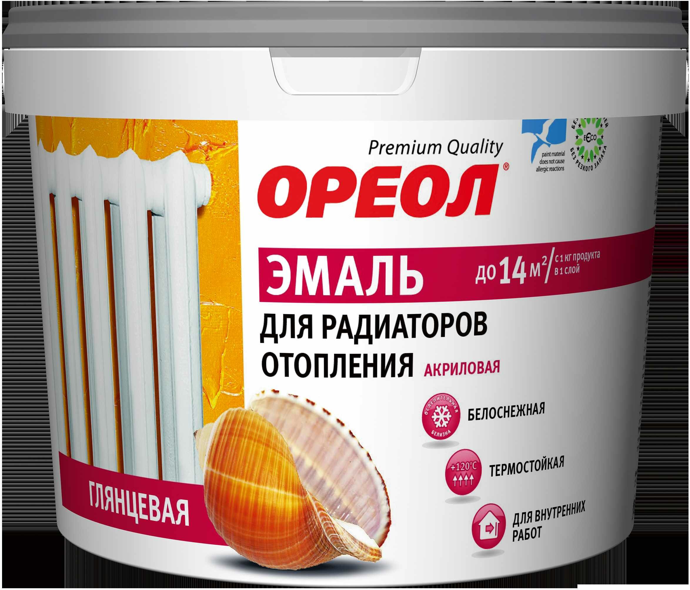 Эмаль акриловая для радиаторов отопления Ореол термостойкая глянцевая 2.5 кг Эмаль Ореол для радиат отопл термост
