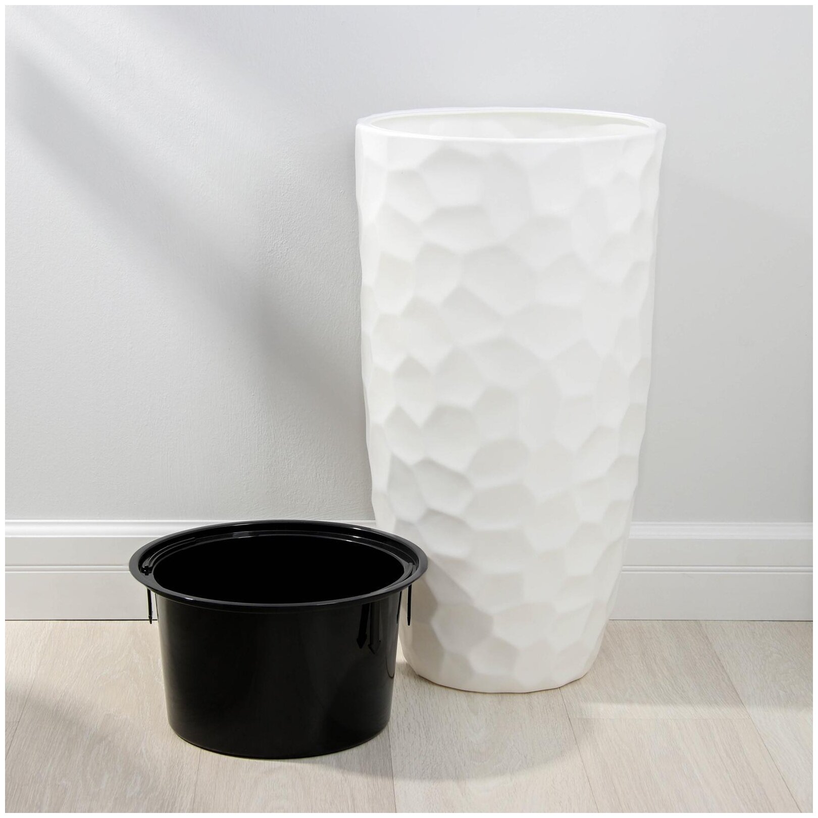 Я купила горшок, чтобы посадить цветок именно без вставки, так как он предполагает за собой большой рост и объемные корни, поэтому получилось, что за эту цену у меня практически 2 горшка, но кому нужно небольшой объем, то очень удобно, что маленькое кашпо внутри горшка с выдвижными ручками и легко можно вынуть его.