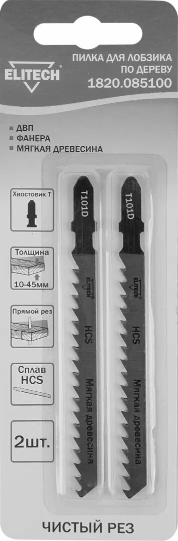 Пилка для лобзика по дереву Elitech T101D 75 мм 2 шт. 1820.085100