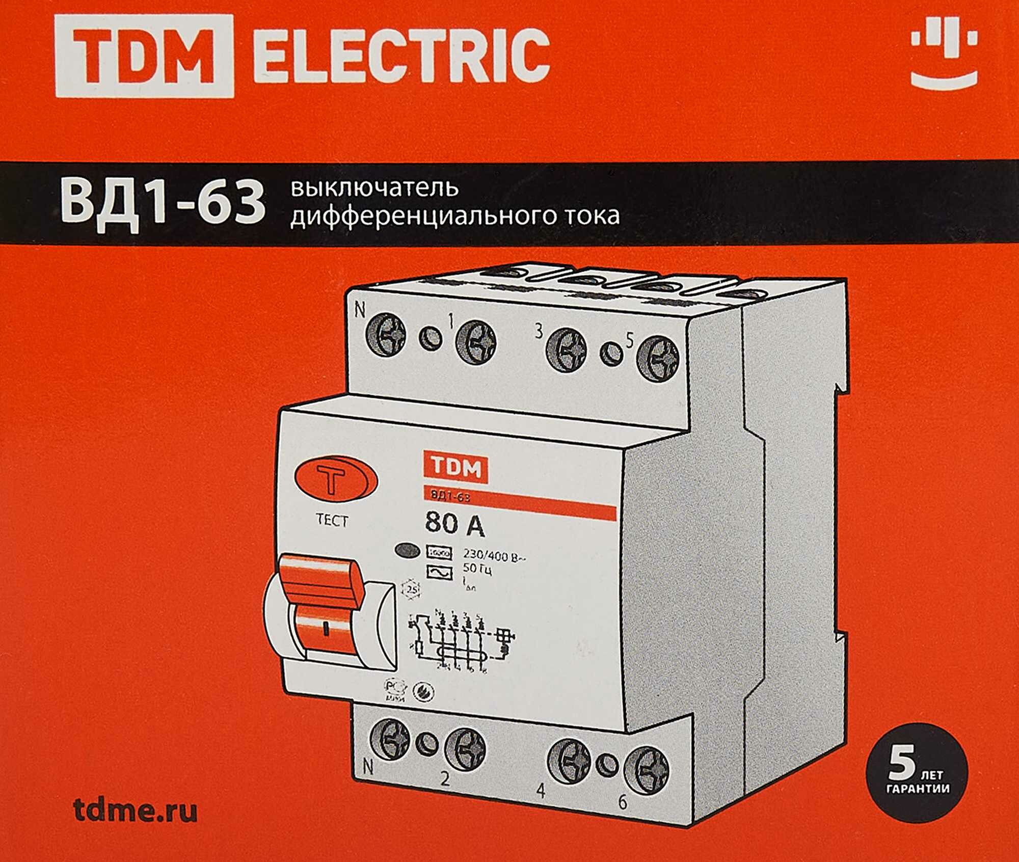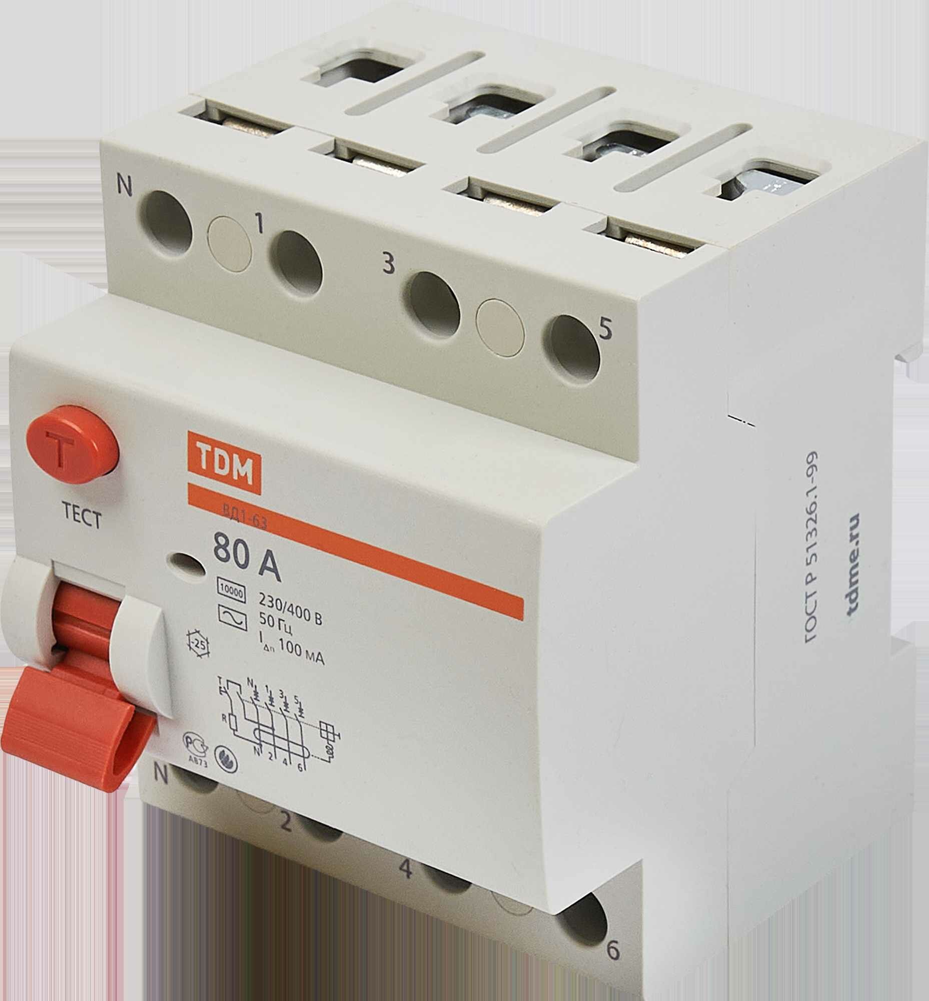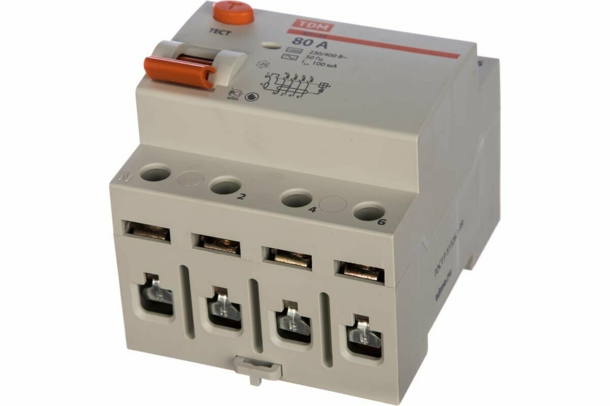 УЗО Tdm Electric 4P 80 A 100 мА 4.5 кА AC SQ0203-0045 ВД1-63