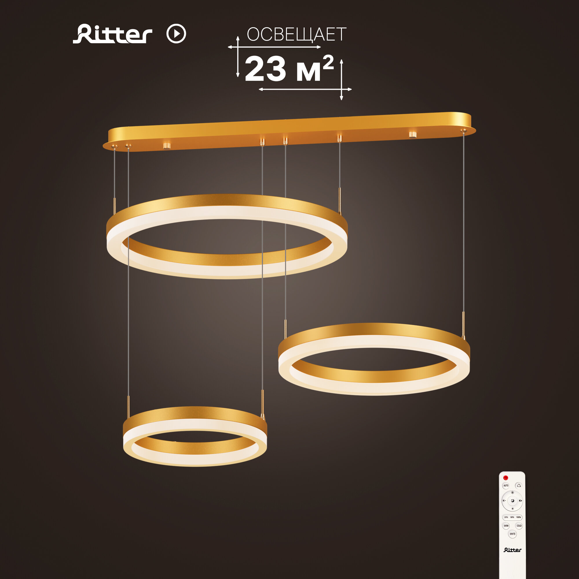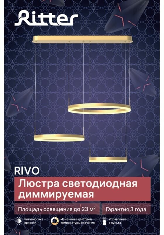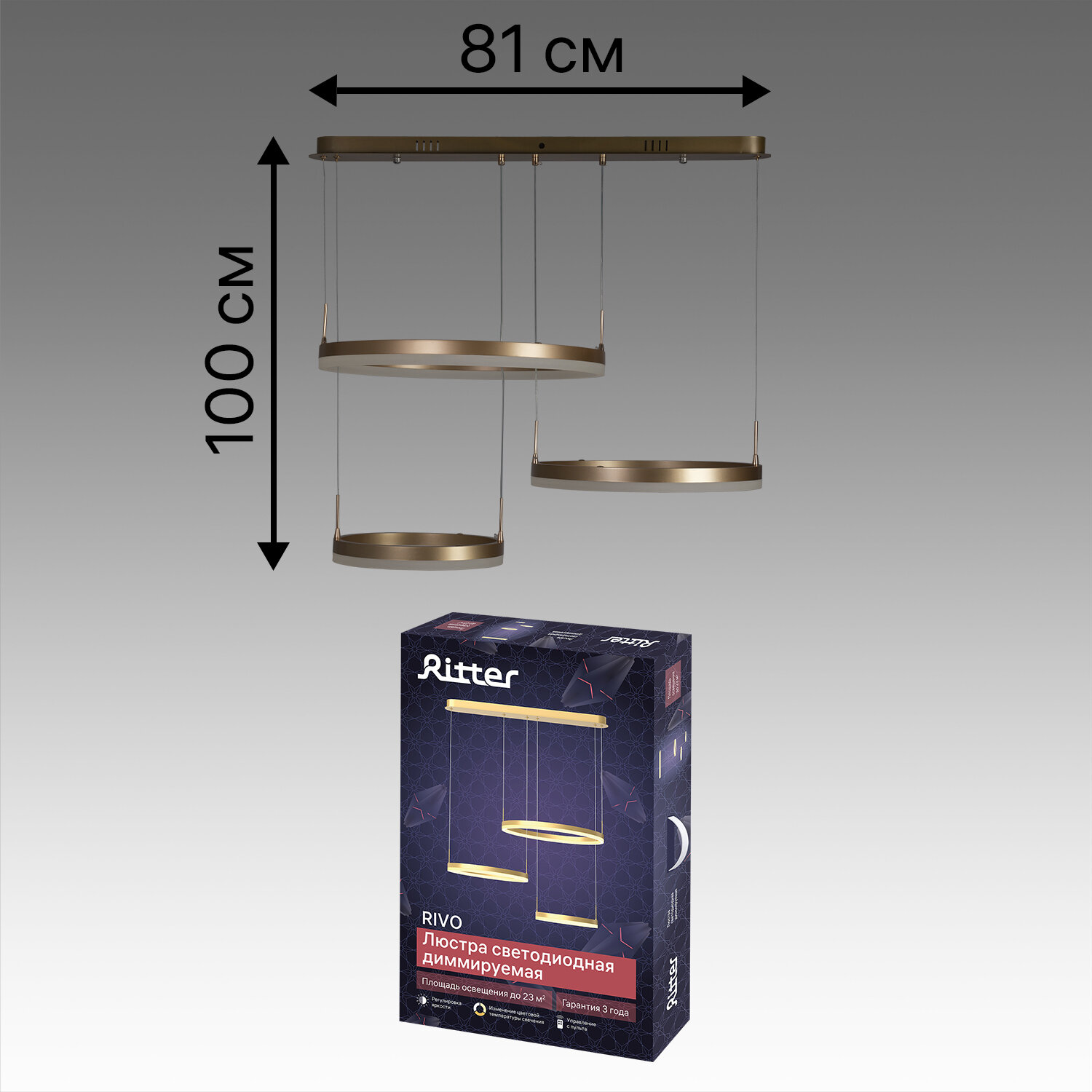 Люстра потолочная светодиодная диммируемая Ritter RIVO с д/у 100 Вт 23 м² 2700К-6500К цвет белый/золотой 52091 1