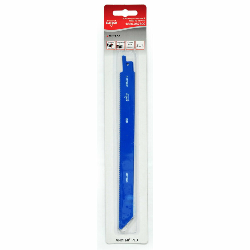 **Пилка Elitech** предназначена для установки в сабельные пилы. Инструмент применяется для распиловки металлических деталей. Полотно изготовлено из биметалла, что обеспечивает высокую прочность и длительный срок службы.