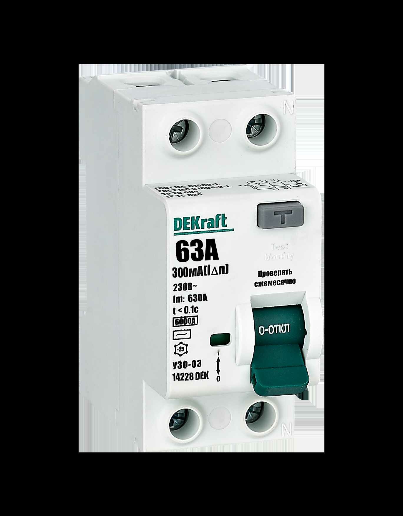 **УЗО DEKraft AC 14228DEKK** используется для установки в электрическом щитке жилого помещения. Защищает человека и животных от случайного поражения током. При сильном перепаде силы тока осуществляет отключение напряжения. Корпус изготовлен из прочного пластика. Имеется тумблер для включения устройства. УЗО на 100% совместима с распределительными щитами Shneider Electric