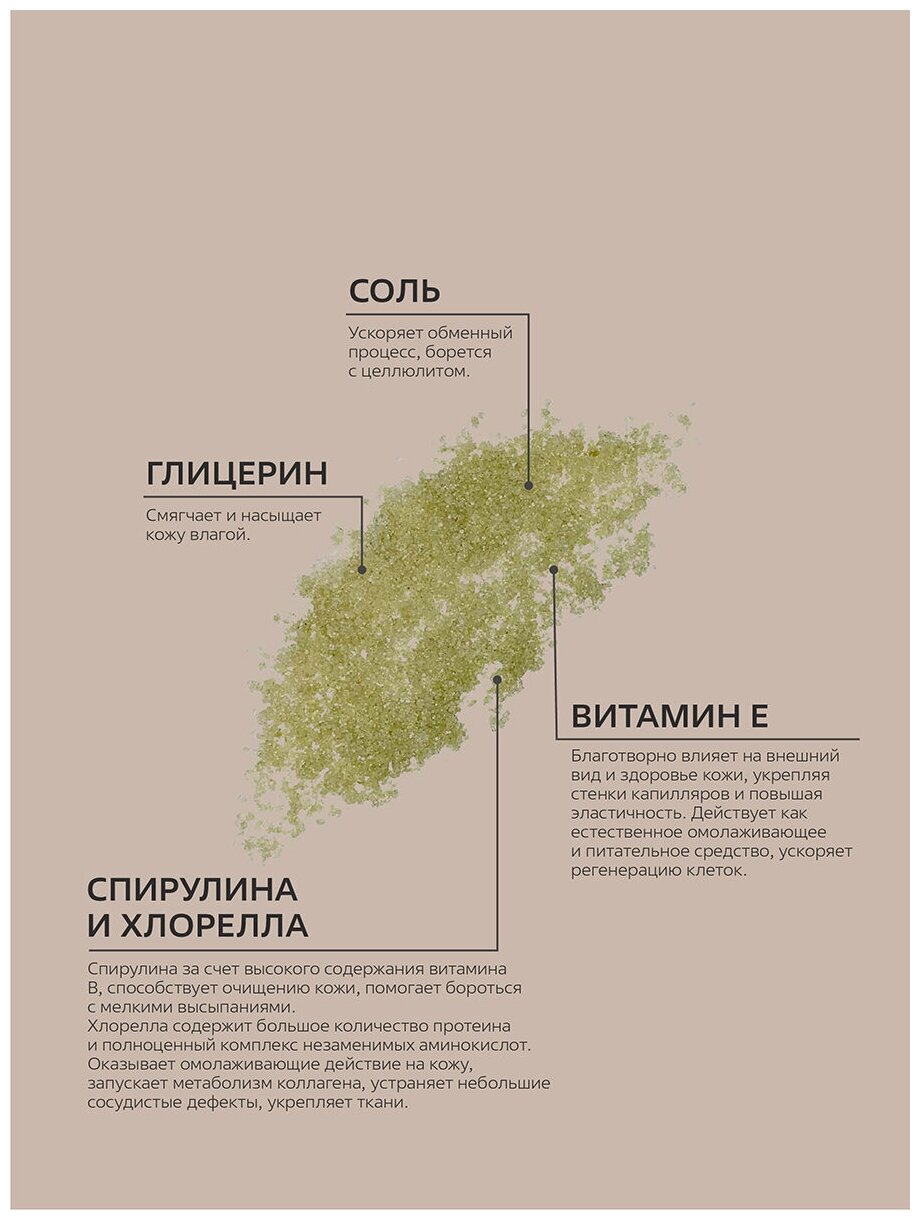 | Состав | Соль, масло рапсовое, глицерин, консервант, водоросли (спирулина и хлорелла), витамин Е |