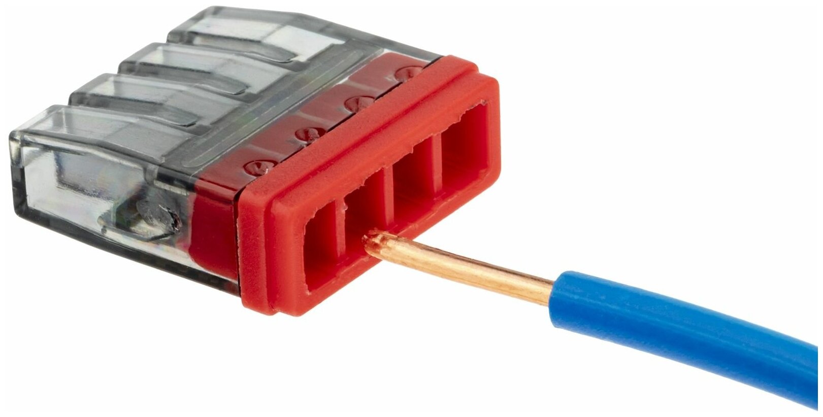 Рассчитана на 4 контакта, применяется при необходимости соединить многожильные проводники из меди, а также из сплавов меди и алюминия. Колодка соединительной клеммы выполнена из негорючего и изолирующего пластикового корпуса, а контакты - из меди с пастой.