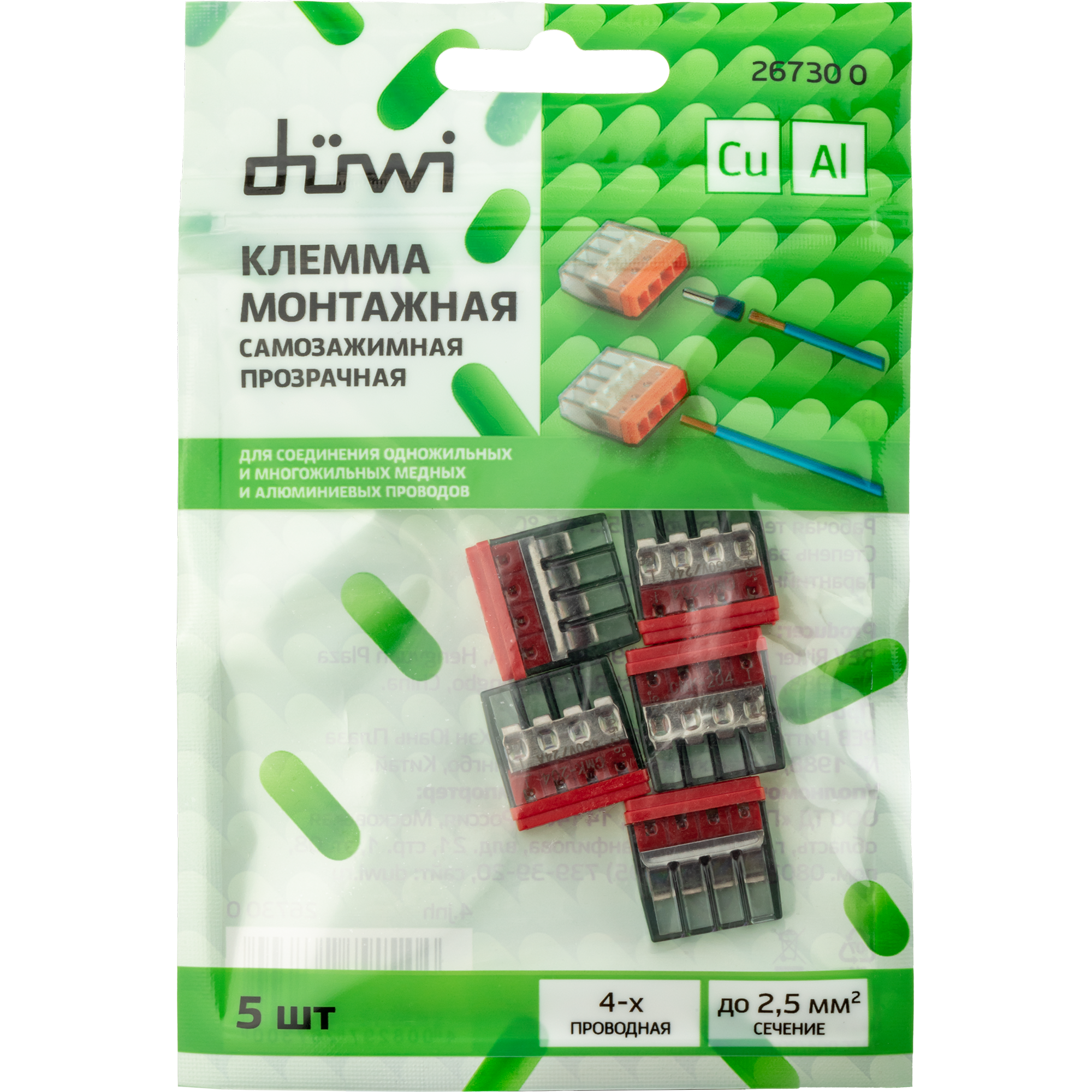 **Монтажная самозажимная клемма duwi. В наборе 5 шт.**