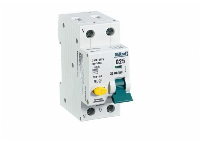 Дифференциальный автомат Dekraft 1P N C25 A 30 мА 6 кА AC 16231DEK