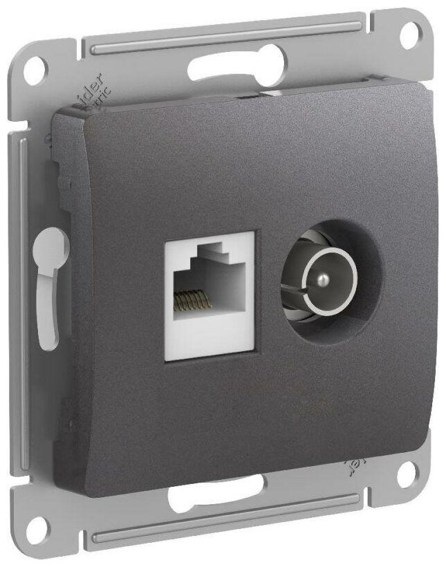 Розетка компьютерная встраиваемая Schneider Electric Glossa RJ45 цвет графитовый Розетка ТВ + ПК