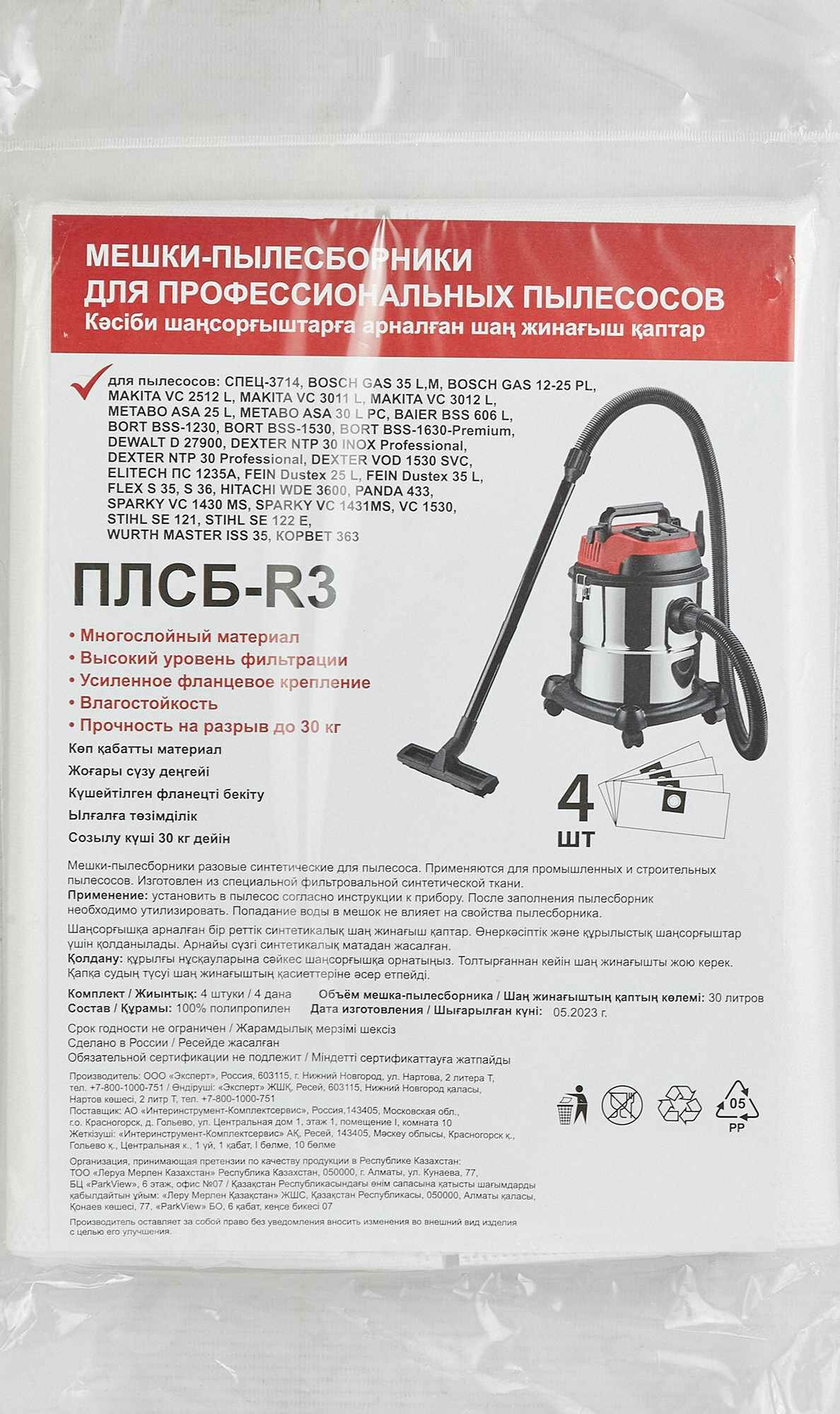 Мешки для пылесоса одновременно являются пылесборником и фильтром тонкой очистки воздуха. Синтетический материал обеспечивает высокую прочность на разрыв, стойкость к попаданию воды и эффективную фильтрацию. Мешки совместимы с широкой линейкой строительных пылесосов. Ёмкость - 30 литров. В упаковке 4 шт.