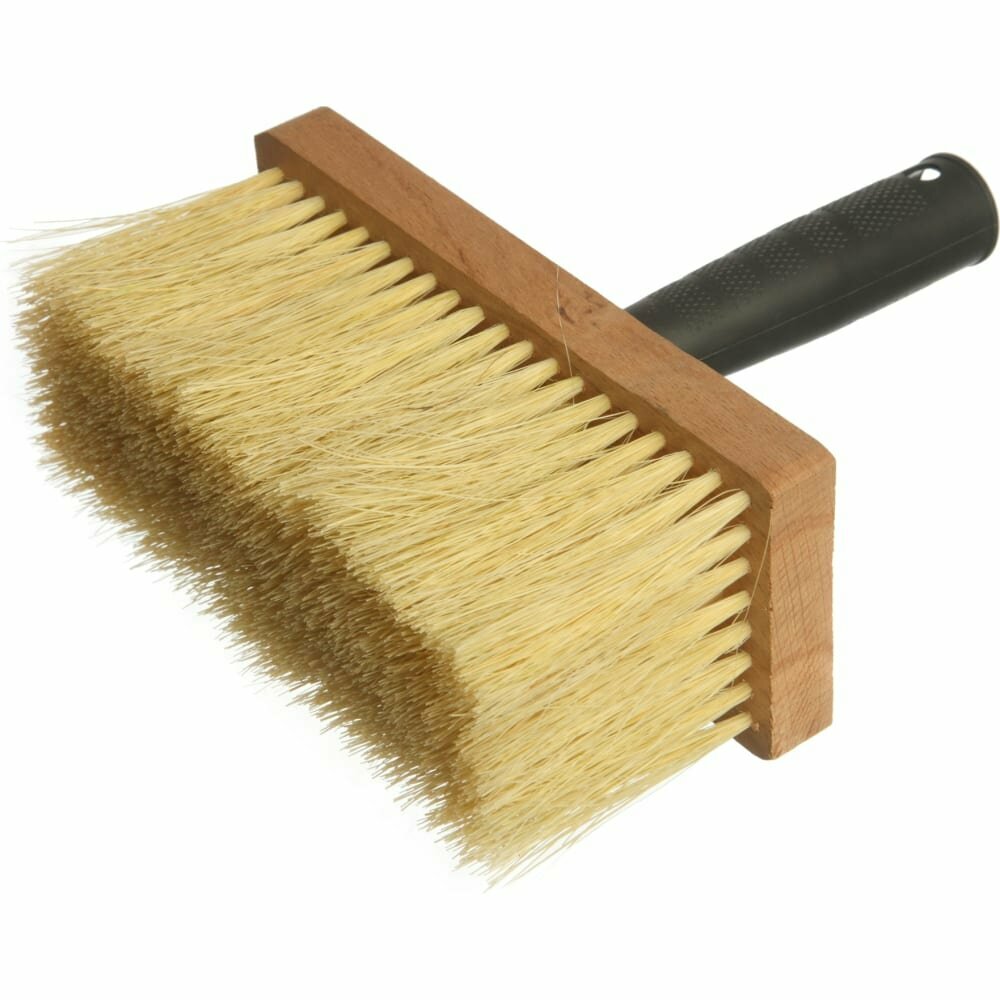 170Х70Х16 мм, 112 пучков Кисть-макловица натуральное растительное волокно тампико изготовлена из древесины бука и натурального волокна тампико. Такое исполнение подходит для нанесения горячих субстанций. Щетка поставляется с отвинчивающейся пластиковой рукояткой с отверстием для экстендера. Предназначена для работы на больших поверхностях (потолках, стенах, полах), нанесения грунтовок, известковых и дисперсионных красок, пропитывающих средств. Макловицы по сравнению с маховыми кистями характеризуются большей скоростью (производительность выше в 2.5 раза) и качеством проведения малярных работ.