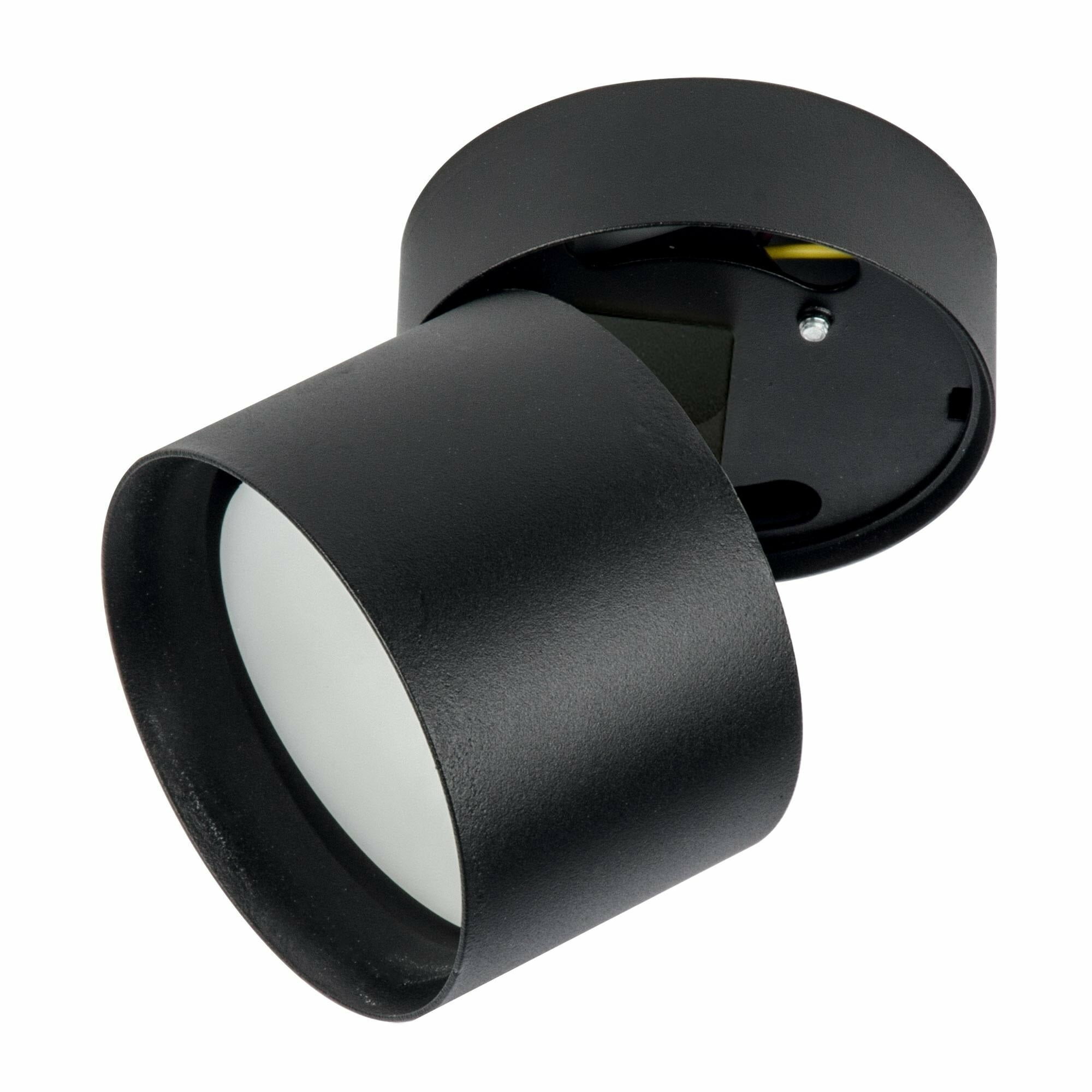 **Спот поворотный встраиваемый/накладной S615** черного цвета используется для освещения небольших помещений площадь до 3 м² (кладовки, гардеробной) или создания визуальных зон в гостиной или на кухне. Подходящий тип цоколя — GX53 (лампочка не включена в комплект поставки).