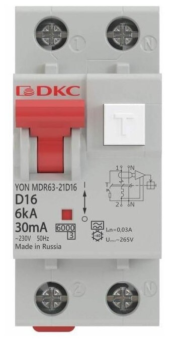 Дифференциальный магнитотепловой переключатель Yon MDR63 1P N 40 А 30 мА C DKC АВДТ YON MDR63 1P N 10A C 30MA 6KA ТИП A