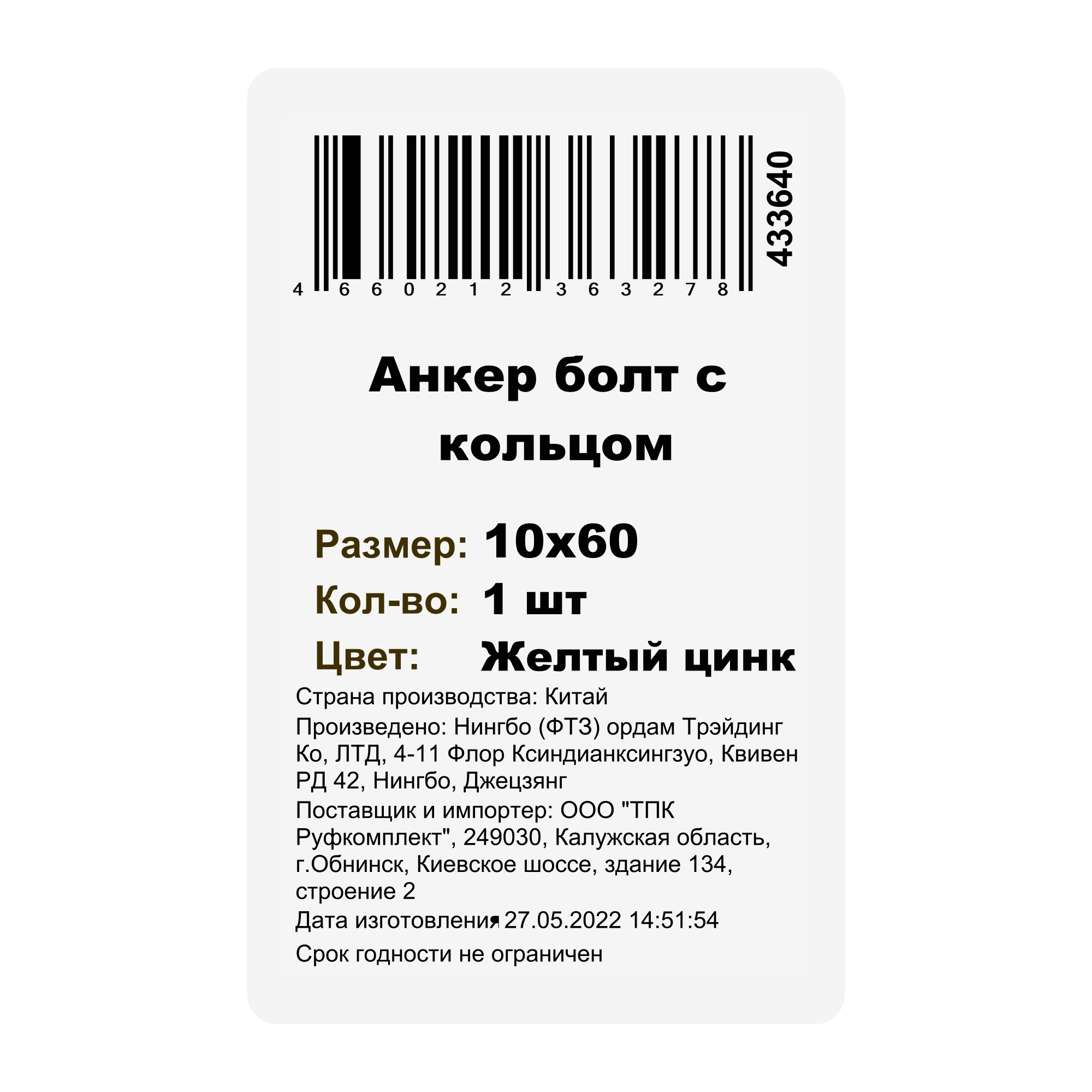 Клиновой анкер-кольцо 10x60 мм оцинкованная сталь Без бренда Анкер-кольцо 10х60