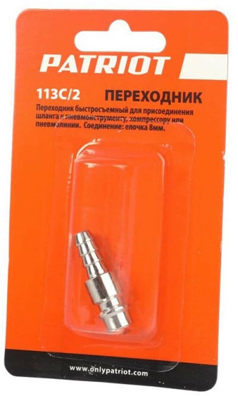 Переходник для компрессора 8 мм Rapid елочка Patriot - идеальное решение для подключения компрессоров и пневмоинструмента. Изготовленный из прочного металла, он обеспечивает надежное соединение и долговечность. Компактный размер 8 мм делает его универсальным и удобным в использовании.