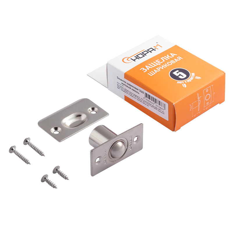 Ригель выполнен в форме шарика, для открывания не требуется поворота дверной ручки.