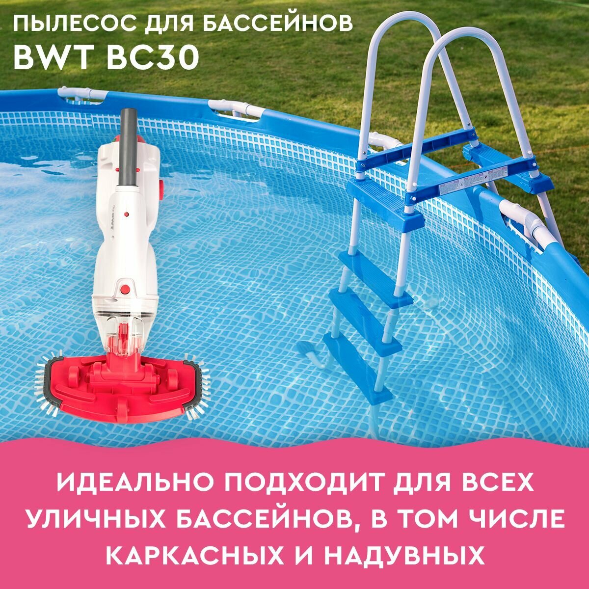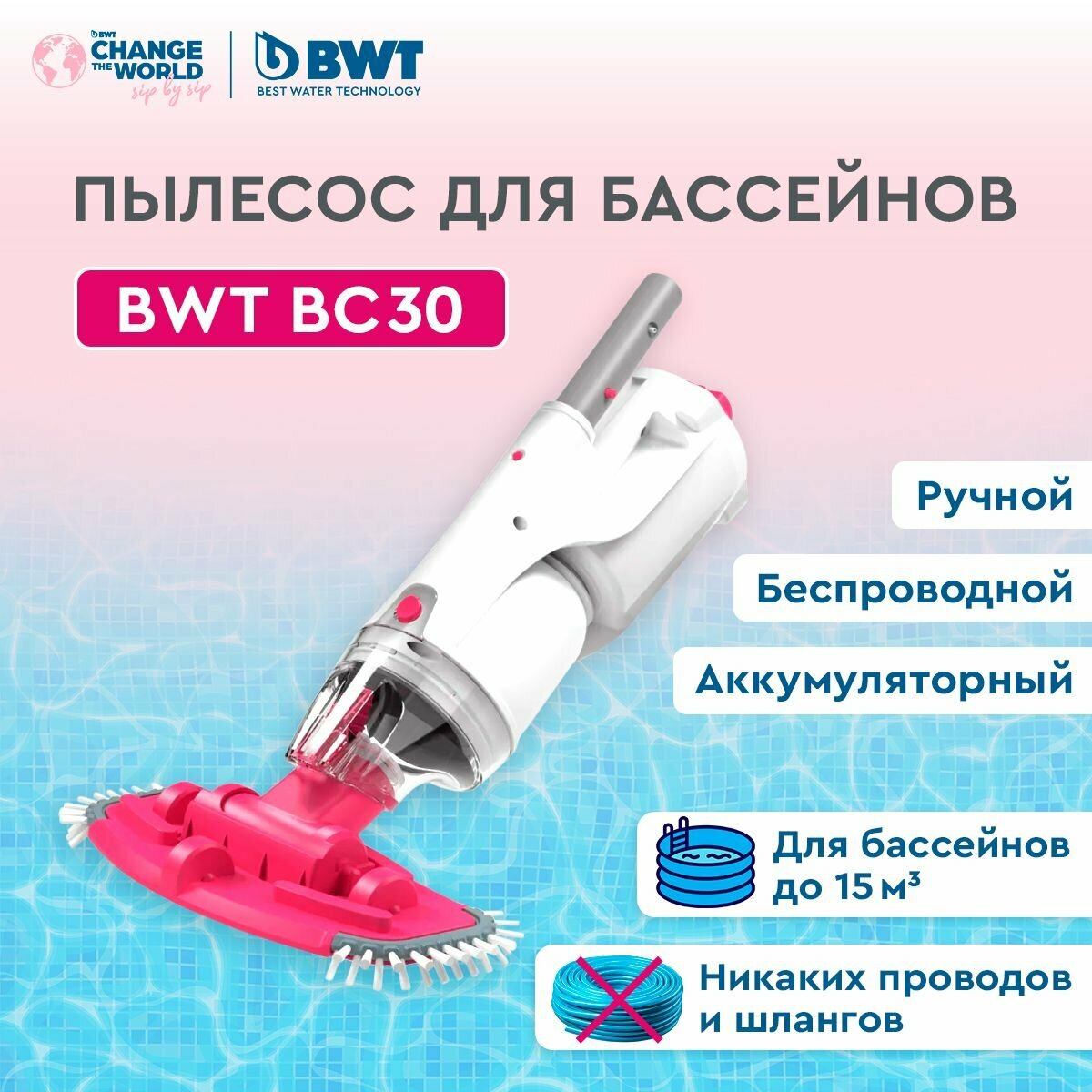 **Аккумуляторный пылесос BWT BC30 для бассейнов и СПА** - идеально подходит для бассейнов и спа-салонов среднего размера (5-15 м3).