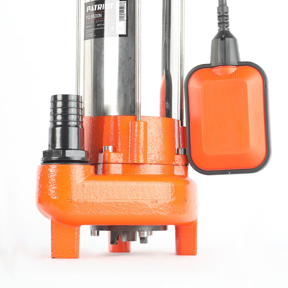 **Насос погружной дренажный Patriot FQ5500** предназначен для откачивания грязной воды, содержащей частицы размером до 25 мм. Используется для откачки канализационных и выгребных ям. Также может использоваться для откачивания воды из затопленных помещений, бассейнов, колодцев, дождевых резервуаров и водостоков, перекачивания нефтепродуктов.