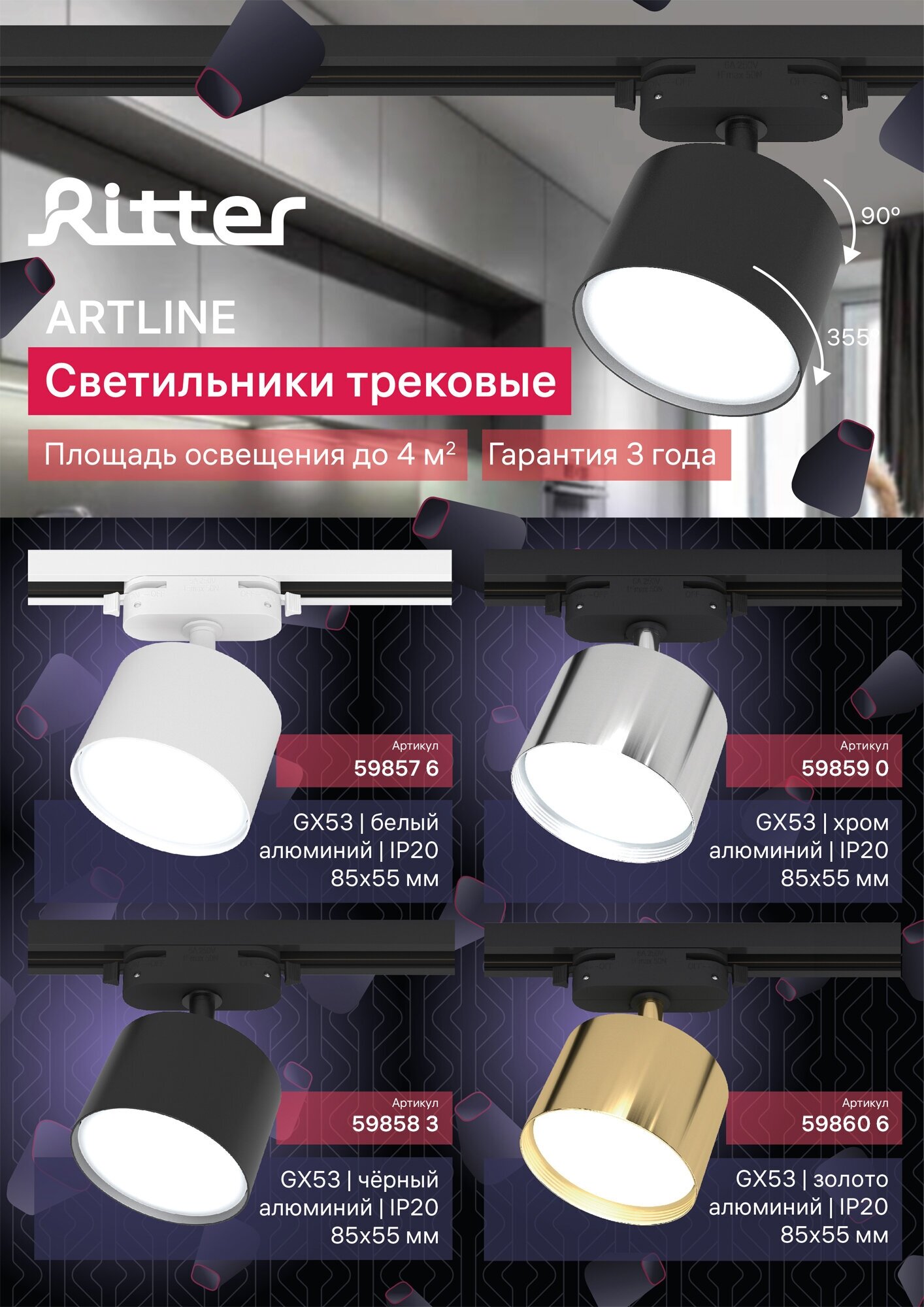 **Трековый светильник Ritter Artline** — предназначен для освещения жилых комнат и помещений общего пользования.