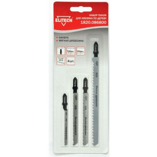 Набор пилок для лобзика по дереву Elitech 4 шт. 1820.086800