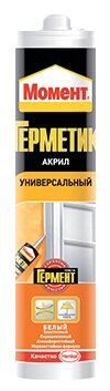 **Герметик Момент Акриловый** — это универсальный влагостойкий акриловый полимер на водной дисперсии. Материал отличается отсутствием запахов. Обладает широким спектром применения для заполнения трещин и швов, возникающих во время ремонтных работ. Есть возможность окраски после высыхания. Отличается высокими адгезивными характеристиками в сочетании с бетоном, кирпичом, МДФ, гипсом. Внешний вид – глянцевый.