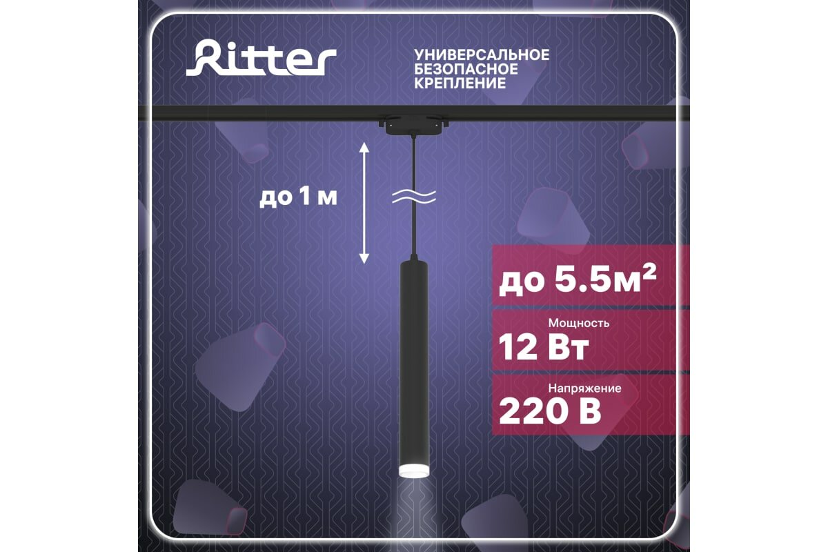 Трековый светильник спот подвесной светодиодный Ritter Artline 300х40мм до 1м 12Вт до 5.5м² 4000К металл/пластик чёрный Artline 59709 8