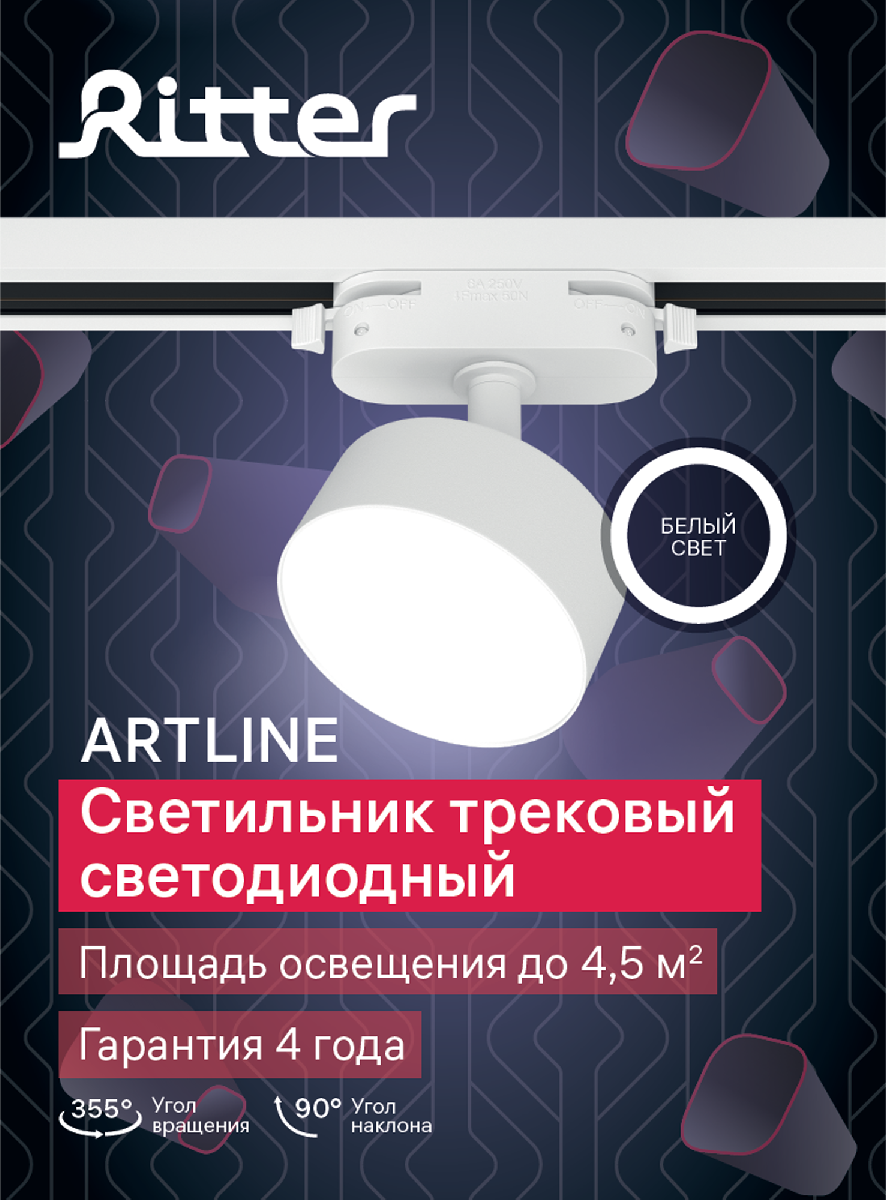 **Трековый светильник Ritter Artline** — предназначен для освещения жилых комнат и помещений общего пользования.