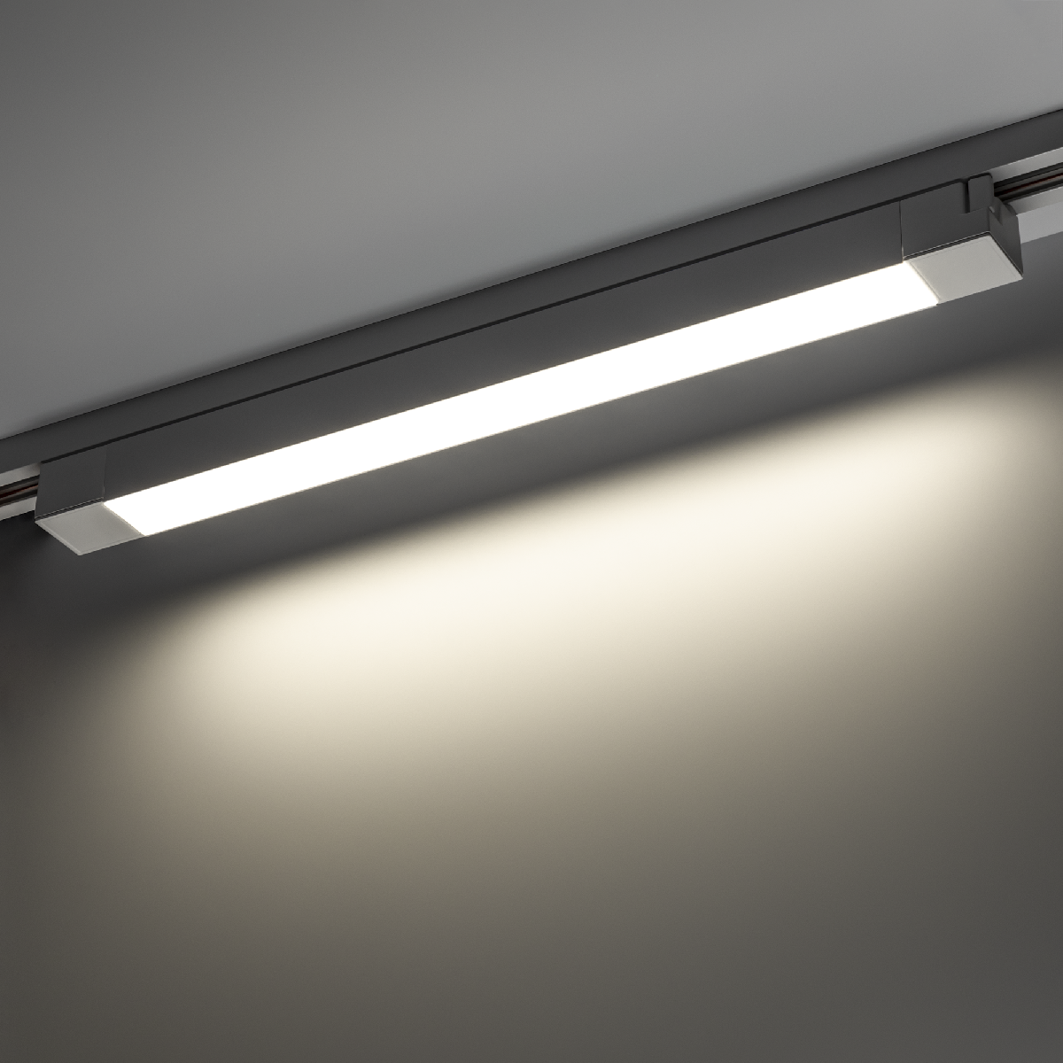Трековый светильник изготовлен с применением технологии LED. В качестве светоэлементов используются встроенные светодиодные лампы, которые отличаются особой долговечностью — порядка 15 лет эксплуатации при бытовом использовании. Также использование светодиодов снижает энергопотребление, исключает нагрев корпуса, дает устойчивость к перепадам напряжения.