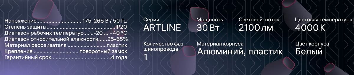 **Трековый светильник Ritter Artline** — предназначен для освещения жилых комнат и помещений общего пользования.