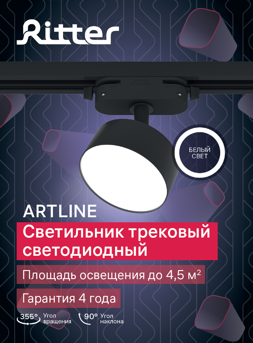 **Трековый светильник Ritter Artline** — предназначен для освещения жилых комнат и помещений общего пользования.